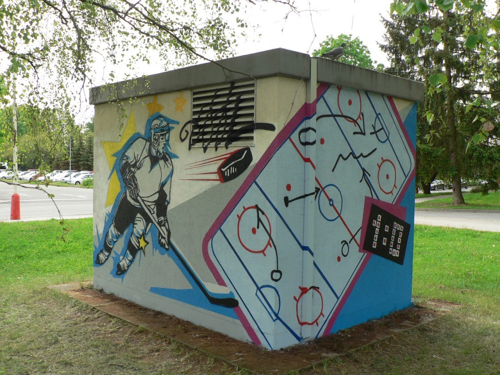 Trafostanici ve Zborovské ulici v Táboře z dobi motiv hokejisty.