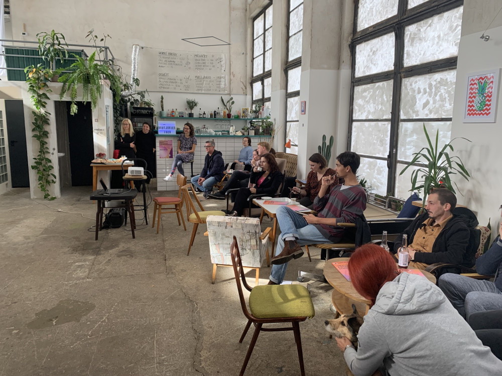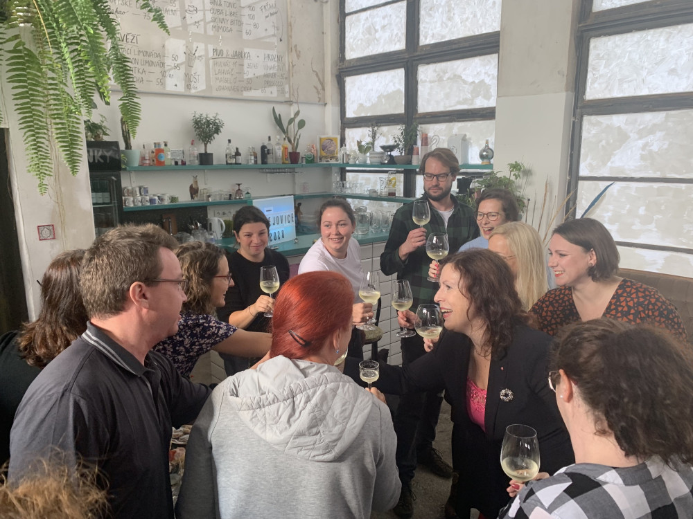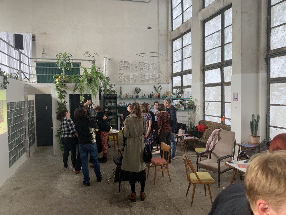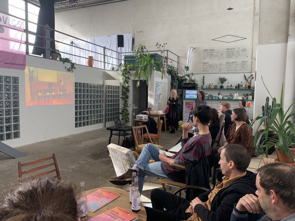 Sledování vyhlášení výsledků v prostorách výměníku v Českých Budějovicích.
