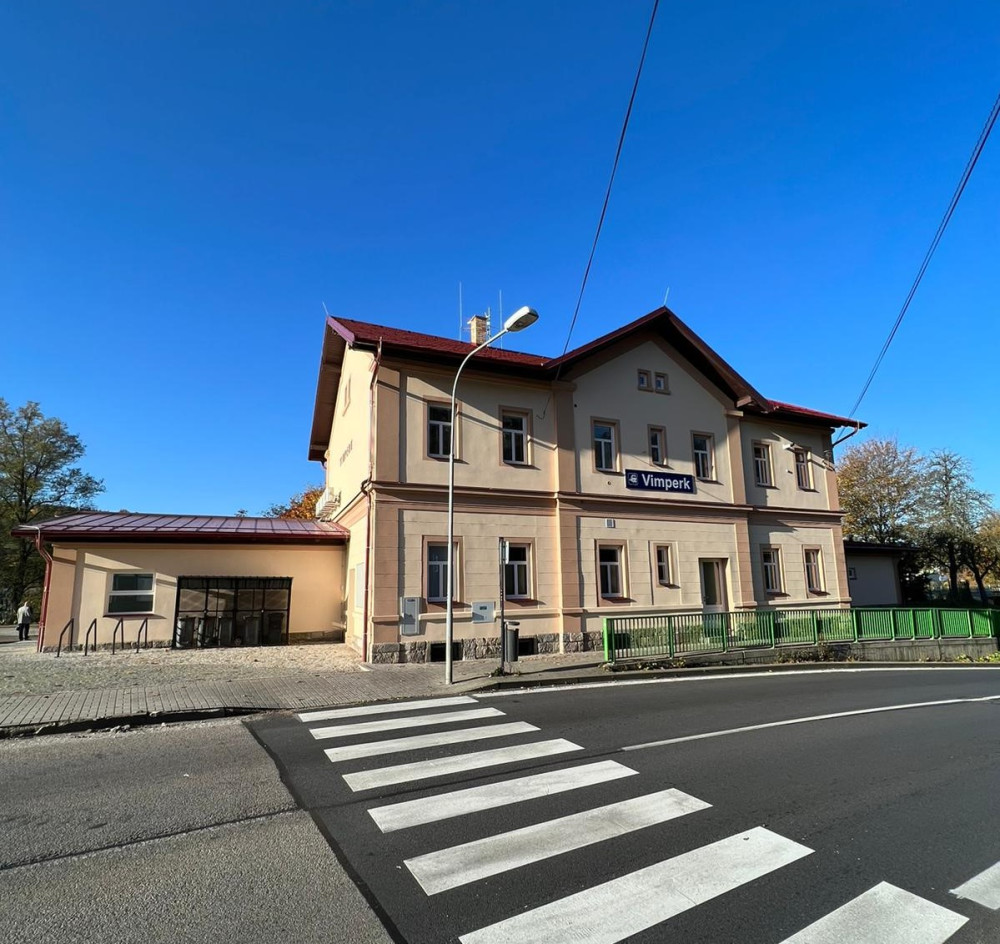 Výpravní budova ve Vimperku nabízí po opravě moderní zázemí pro cestující.