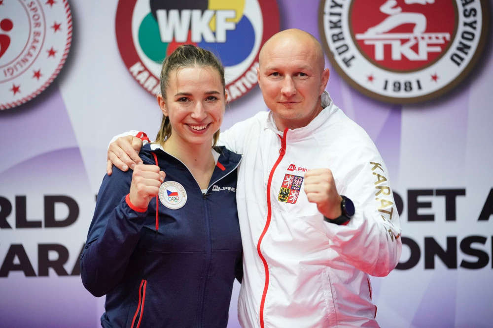 Karatistka Martina Šáchová a trenér Miroslav Hýsek.