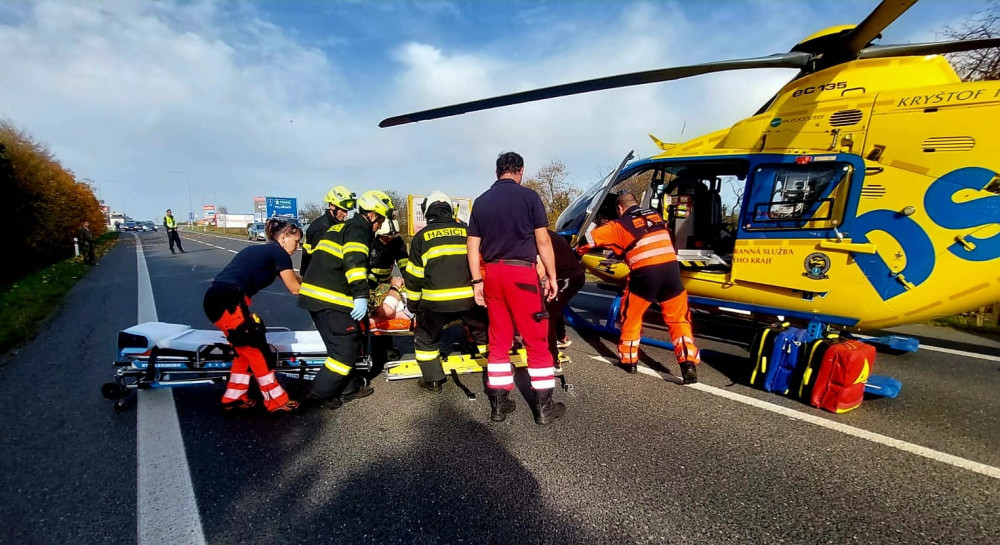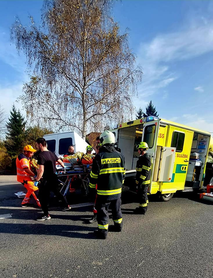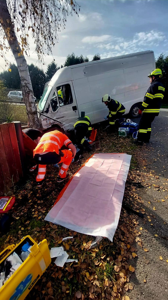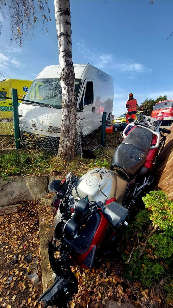 Motorkář skončil v plotu po střetu s dodávkou. Záchranáři ho museli vyprostit
