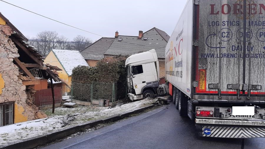 Kamion narazil na Strakonicku do domu. Silnice byla několik hodin uzavřená