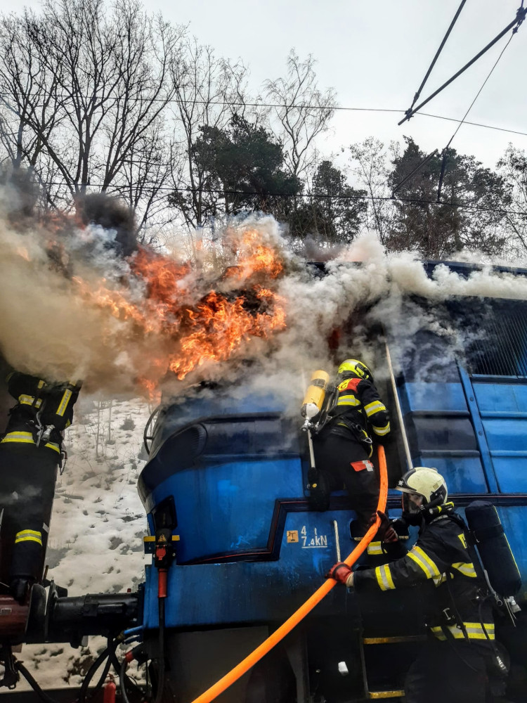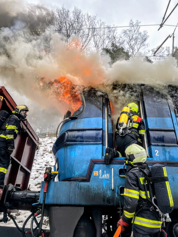 Hasiči zasahovali u požáru lokomotivy. Škoda je jeden a půl milionu korun