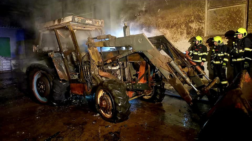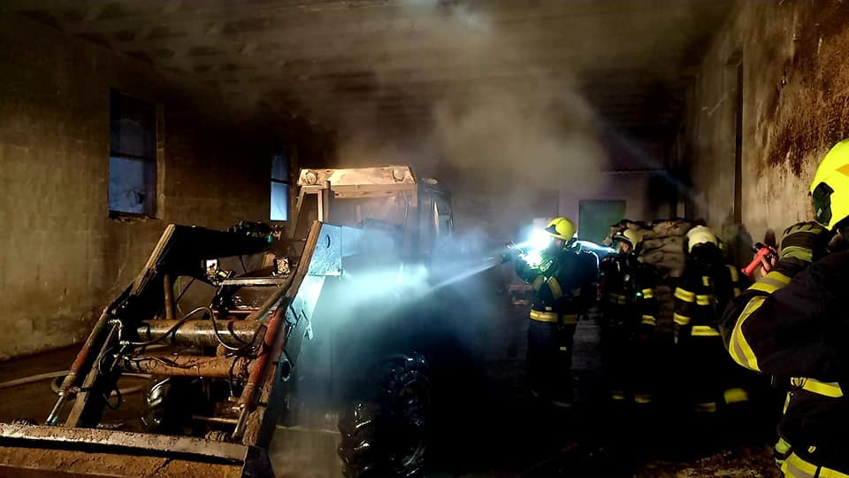 Na Jindřichohradecku hořel ve stodole traktor. Příčinu požáru hasiči šetří