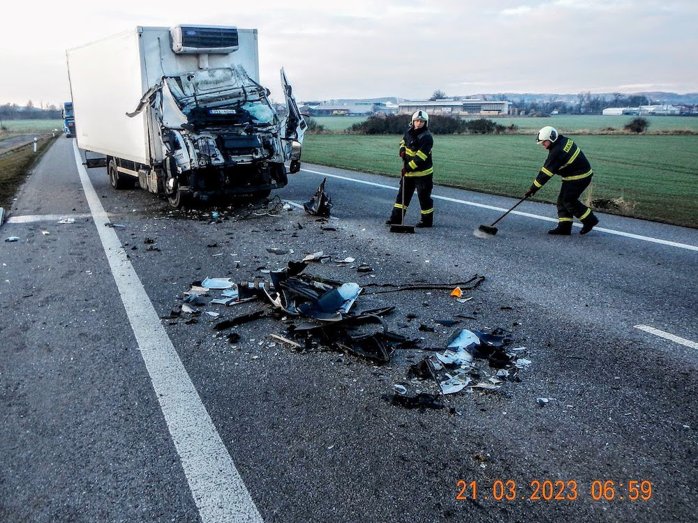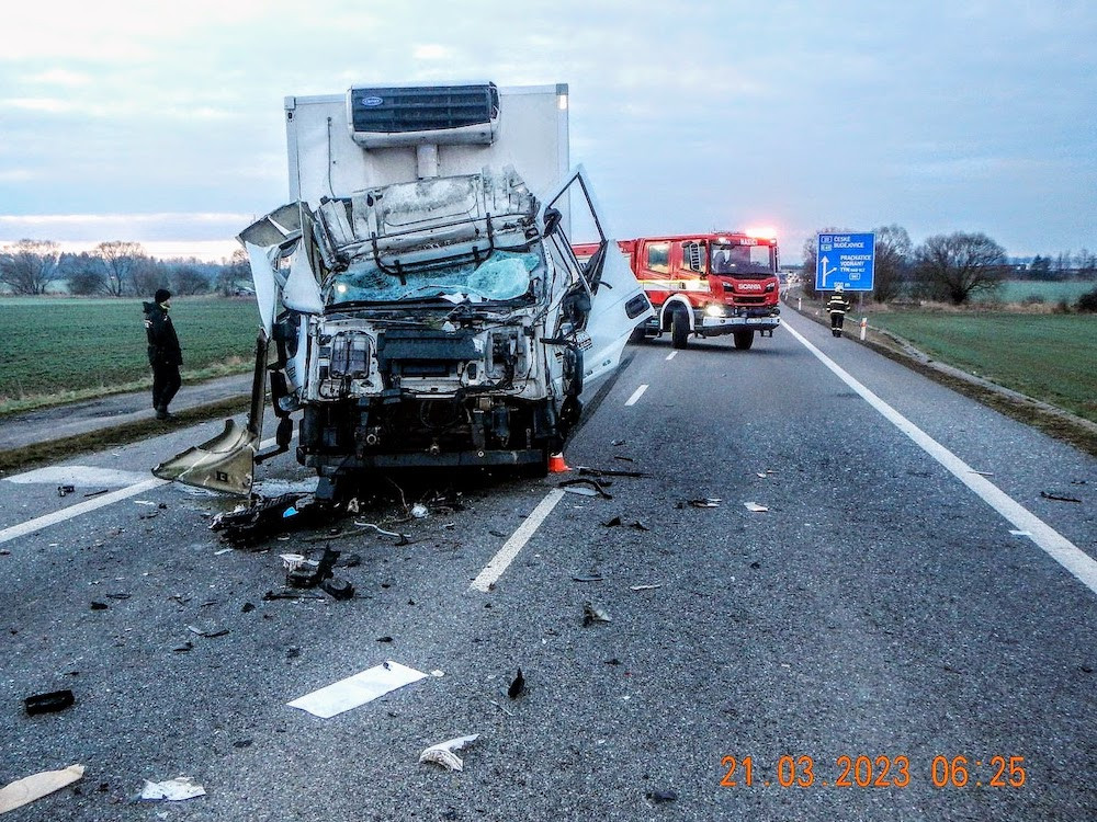 U Vodňan se srazil traktor s náklaďákem. Silnice je uzavřená