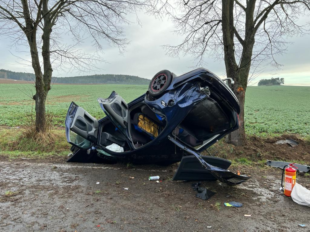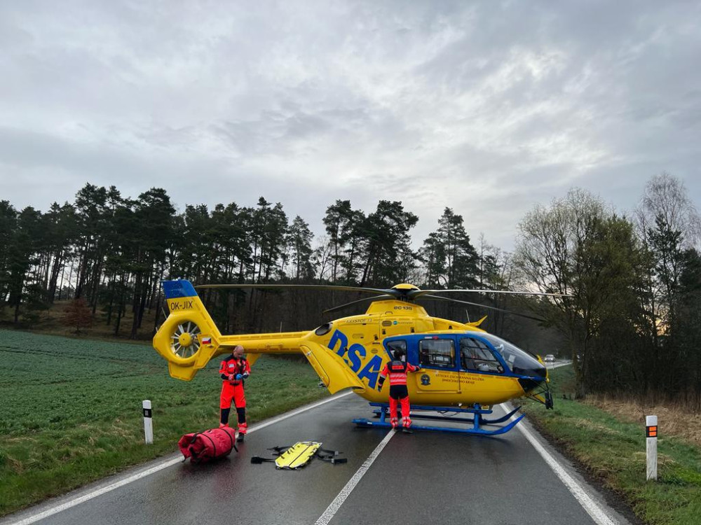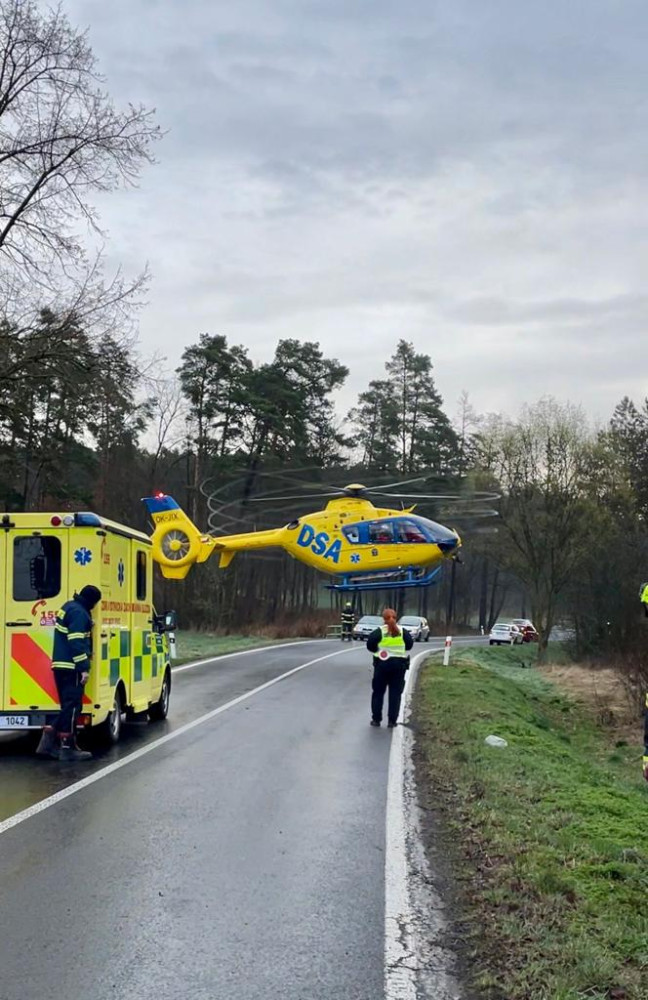 Mladík naboural Octavií do stromu. Do nemocnice ho transportoval vrtulník