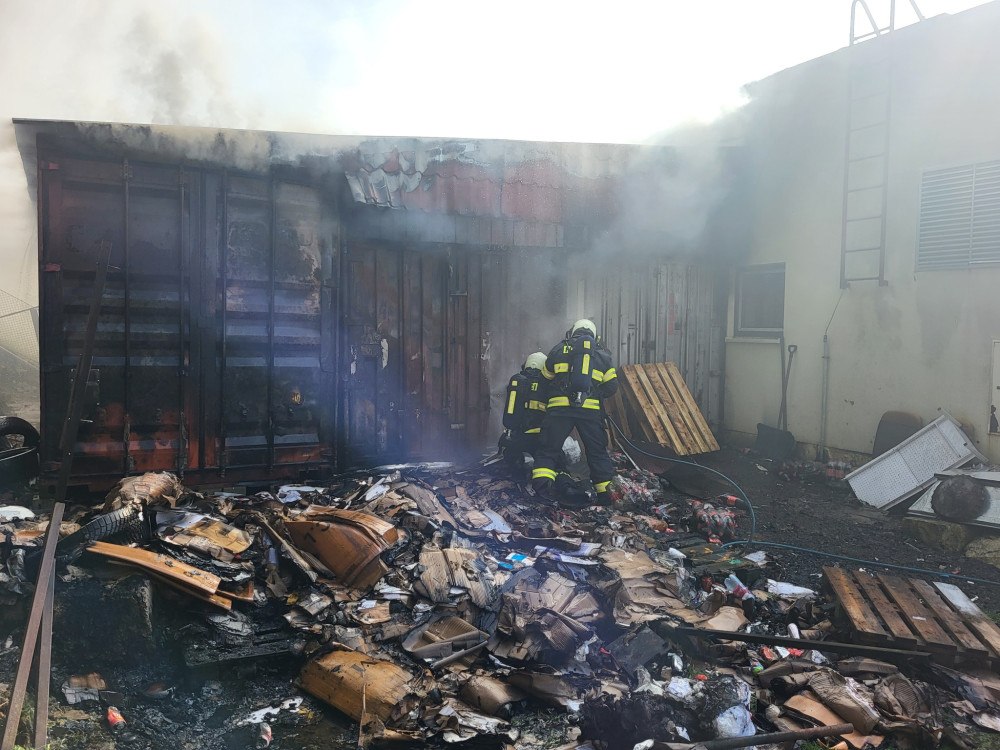 Hasiči zasahují u rozsáhlého požáru kontejnerů. Uvnitř našli i zábavní pyrotechniku