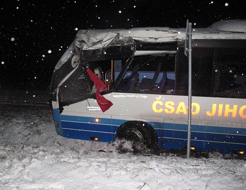 Havarovaný autobus u Trhových Svinů