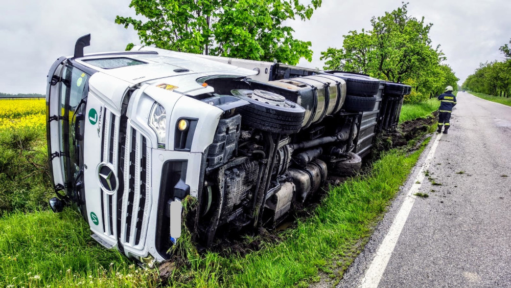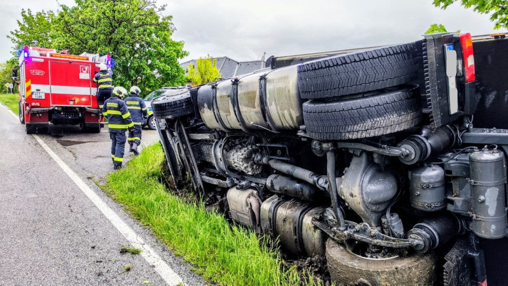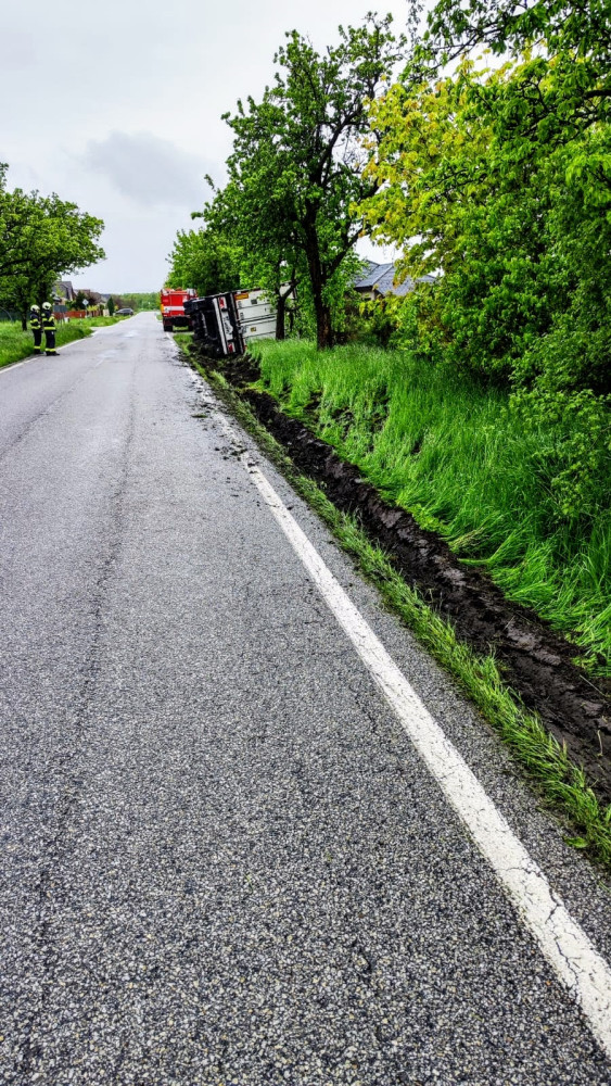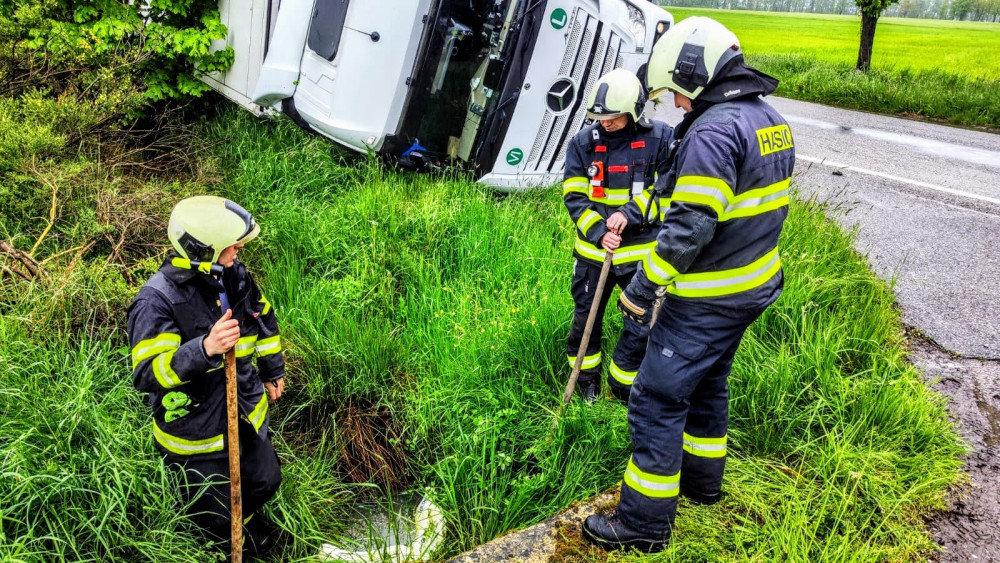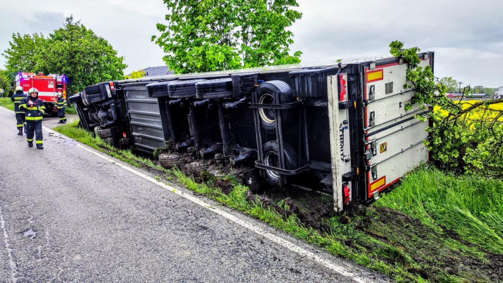 U Čejkovic havaroval kamion s mraženými kuřaty. Silnice je uzavřená