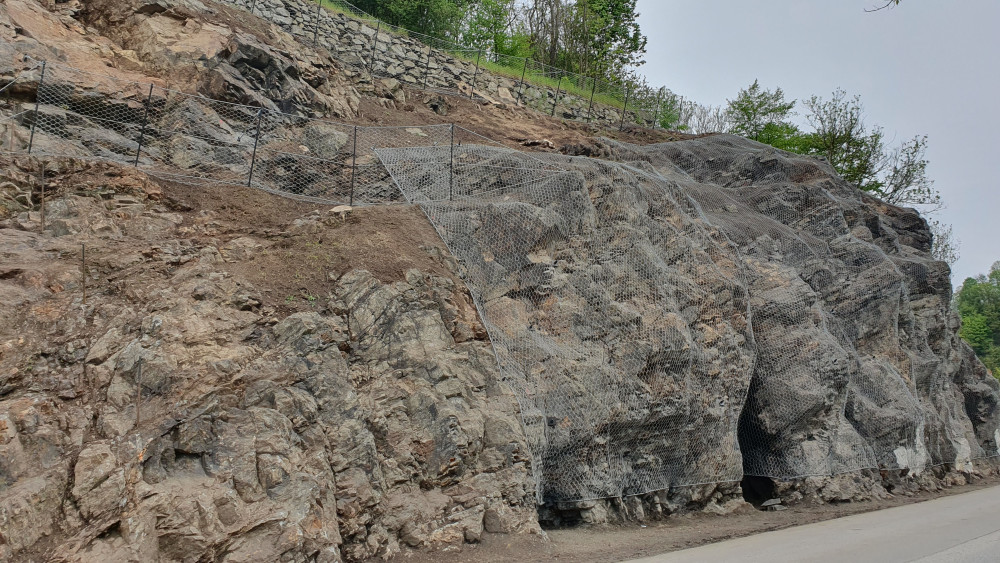 Český Krumlov zajistil nestabilní skálu u silnice. Padaly z ní kameny