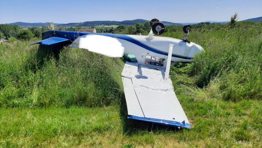 Další letecká havárie. Pilot se s letadlem otočil na střechu