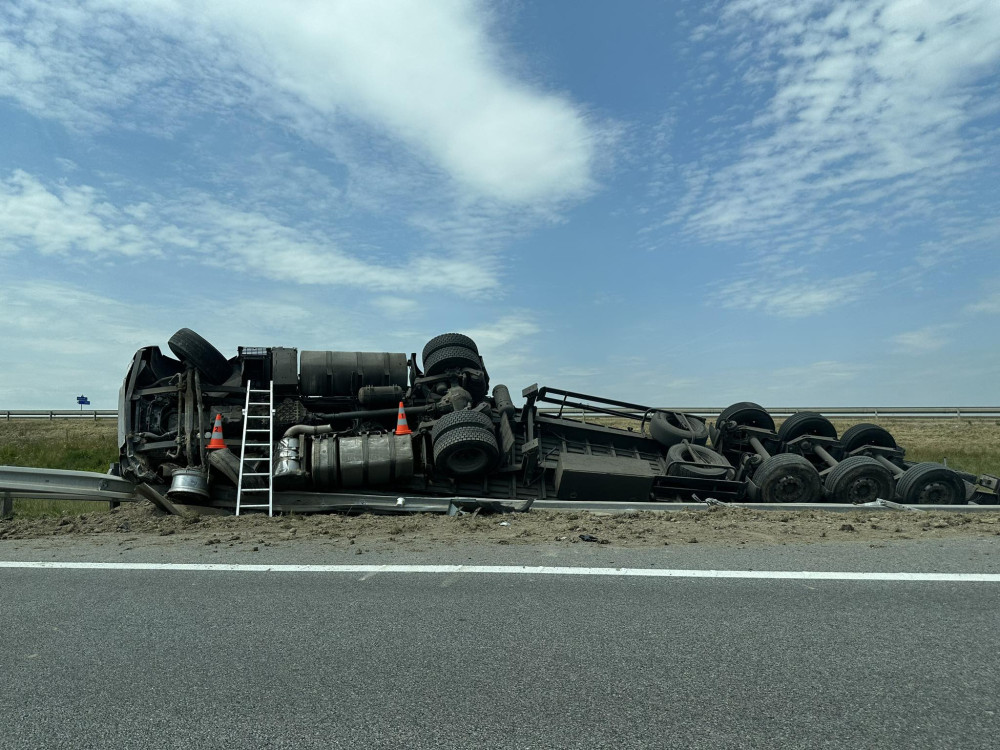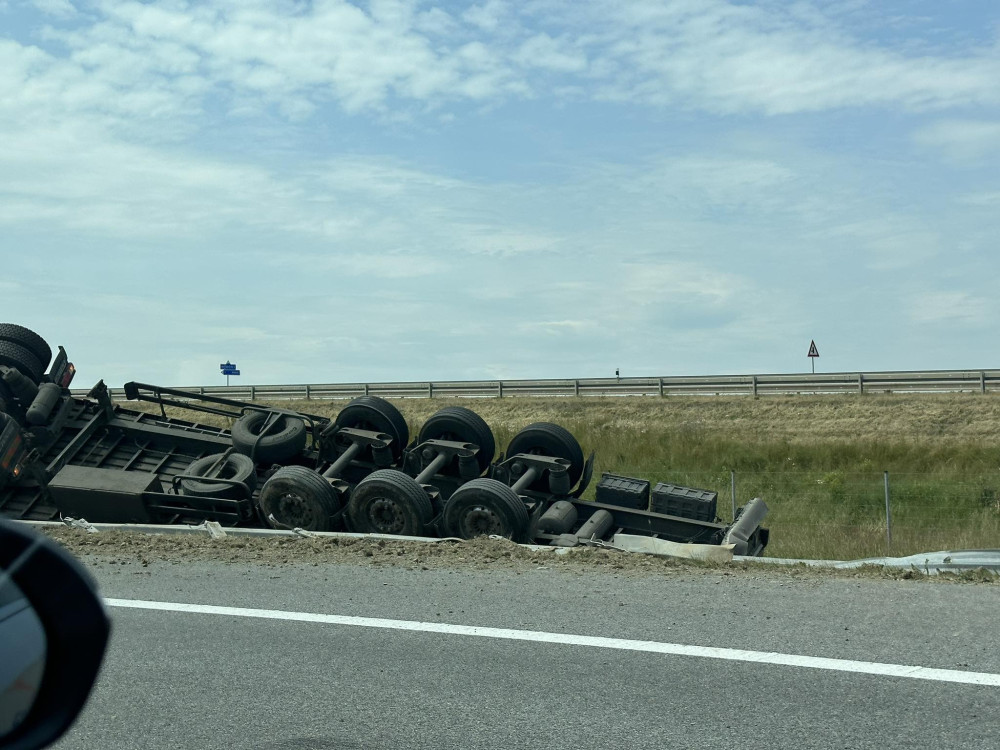 Na D3 se převrátil kamion, řidič skončil v nemocnici