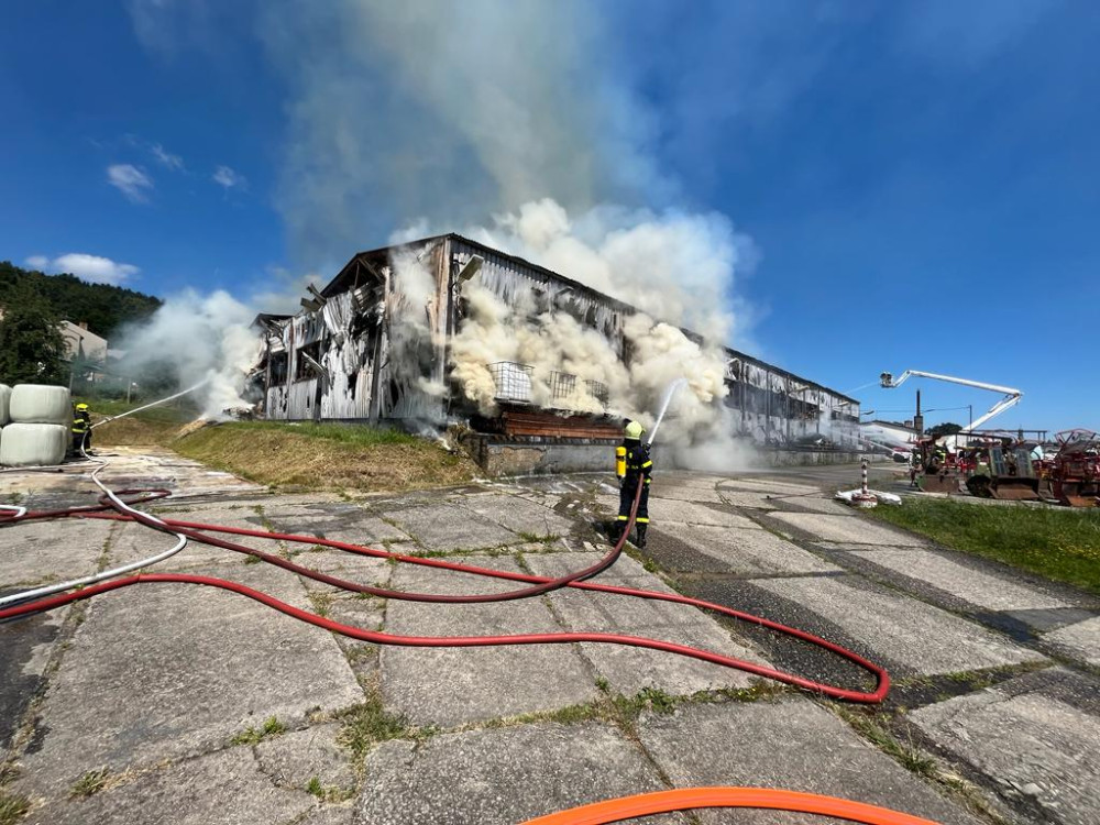 Hasiči budou hlídat požár ve Lhenicích celý víkend. Škoda je přes 18 milionů