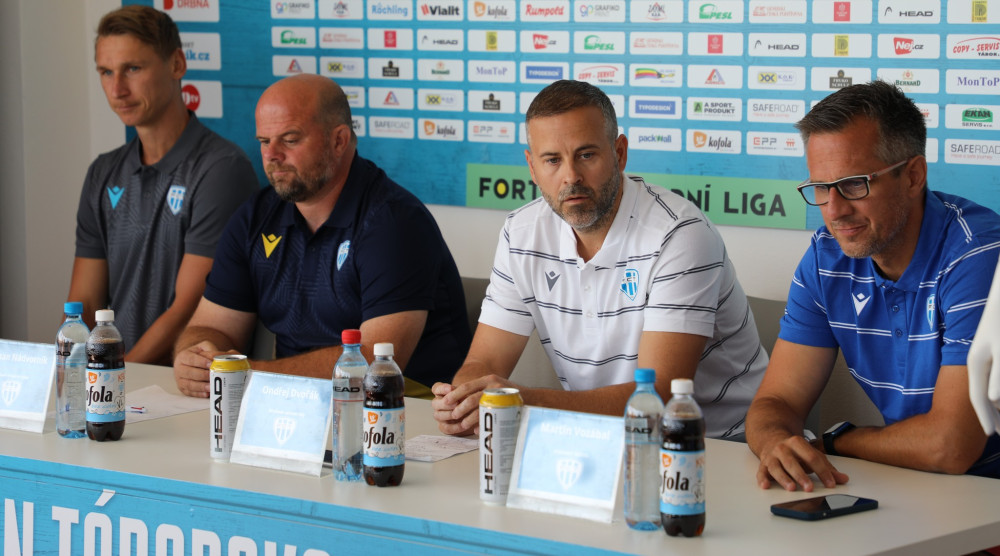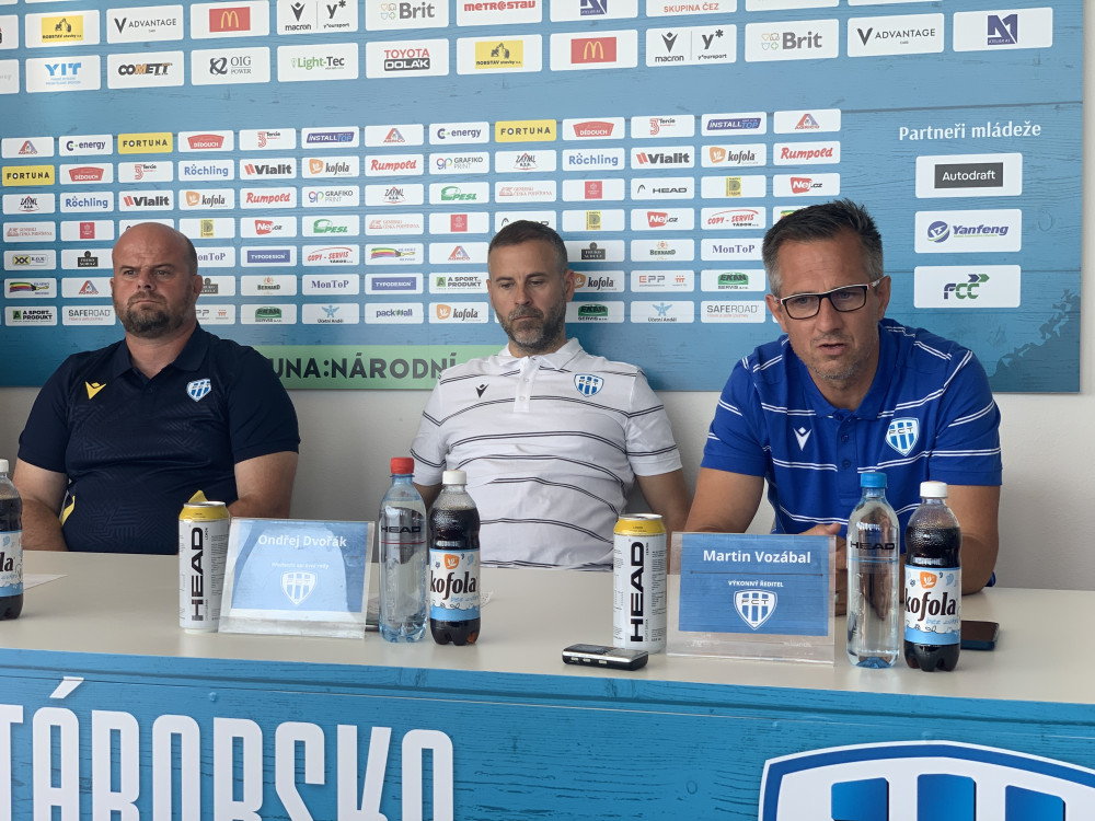Táborsko se chystá na novou sezonu. Zleva: trenér Roman Nádvorník, předseda správní rady Ondřej Dvořák a výkonný ředitel Martin Vozábal. Foto: Jakub Bartoš