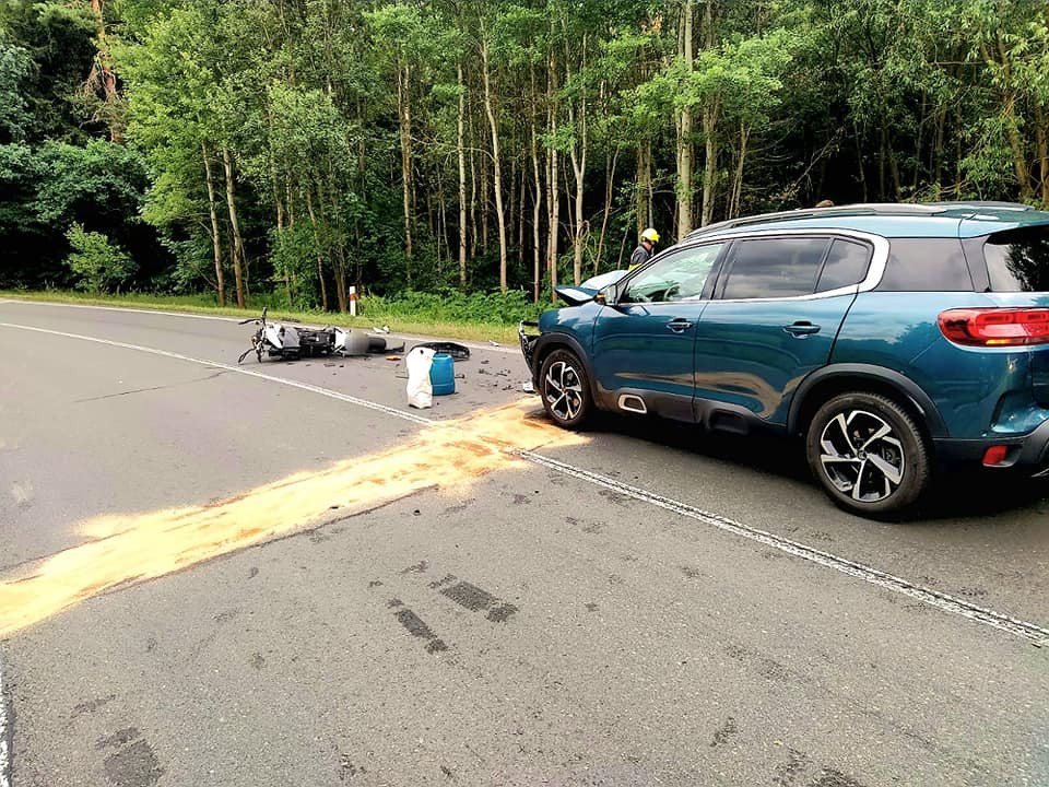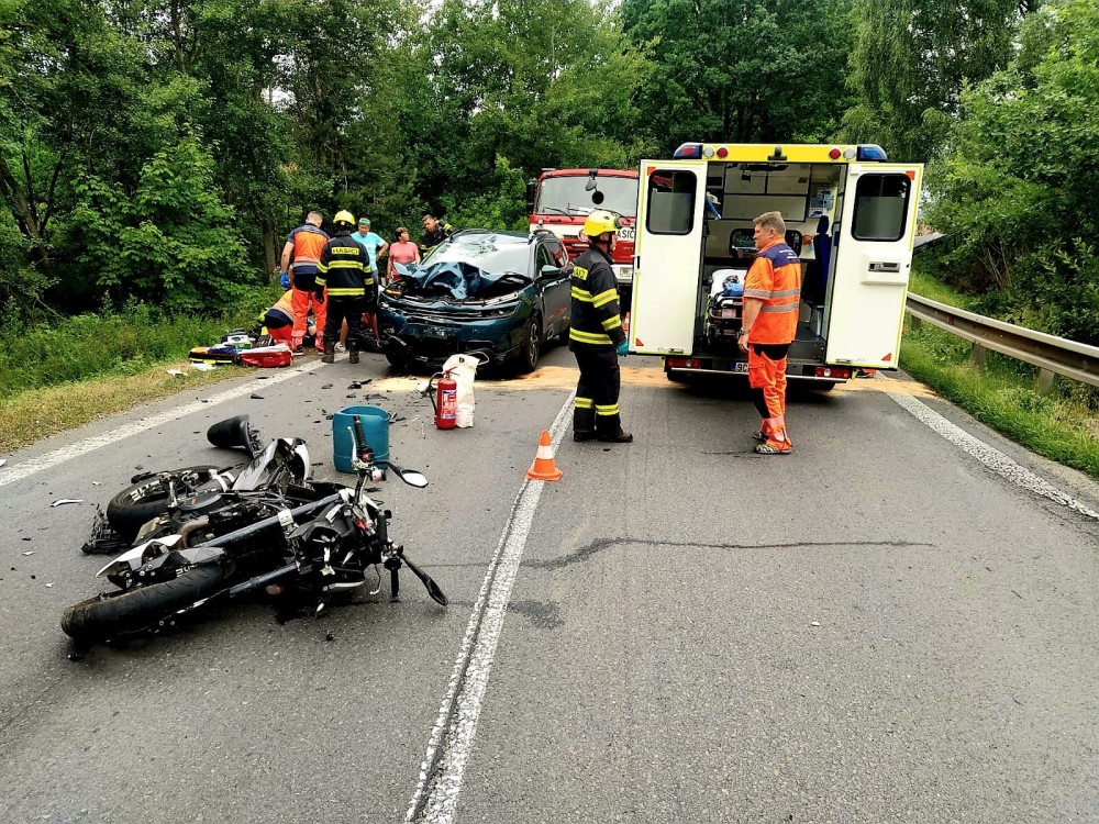 Vážná dopravní nehoda na silnici u Blatné na Strakonicku. Tah je průjezdný jedním pruhem