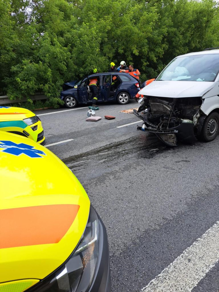 U Strakonic se srazilo auto s dodávkou. Silnice I/4 je neprůjezdná