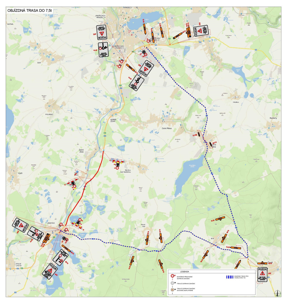 Objízdná trasa zveřejněná ŘSD.