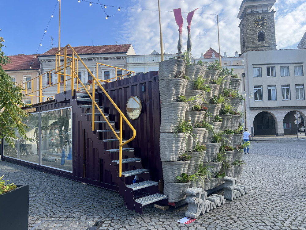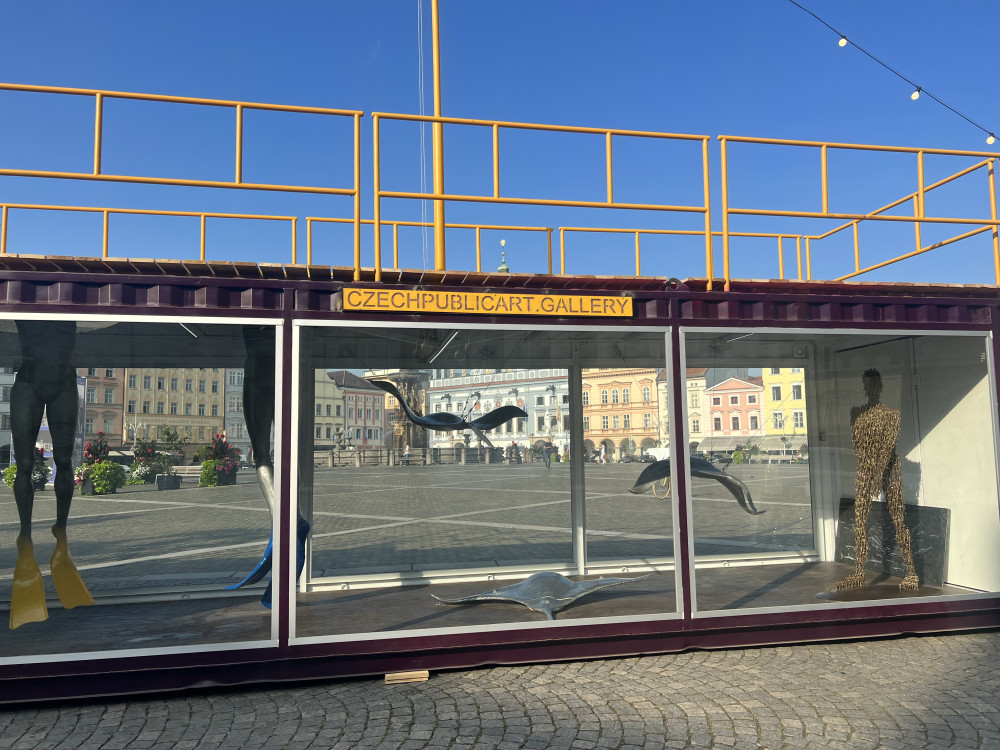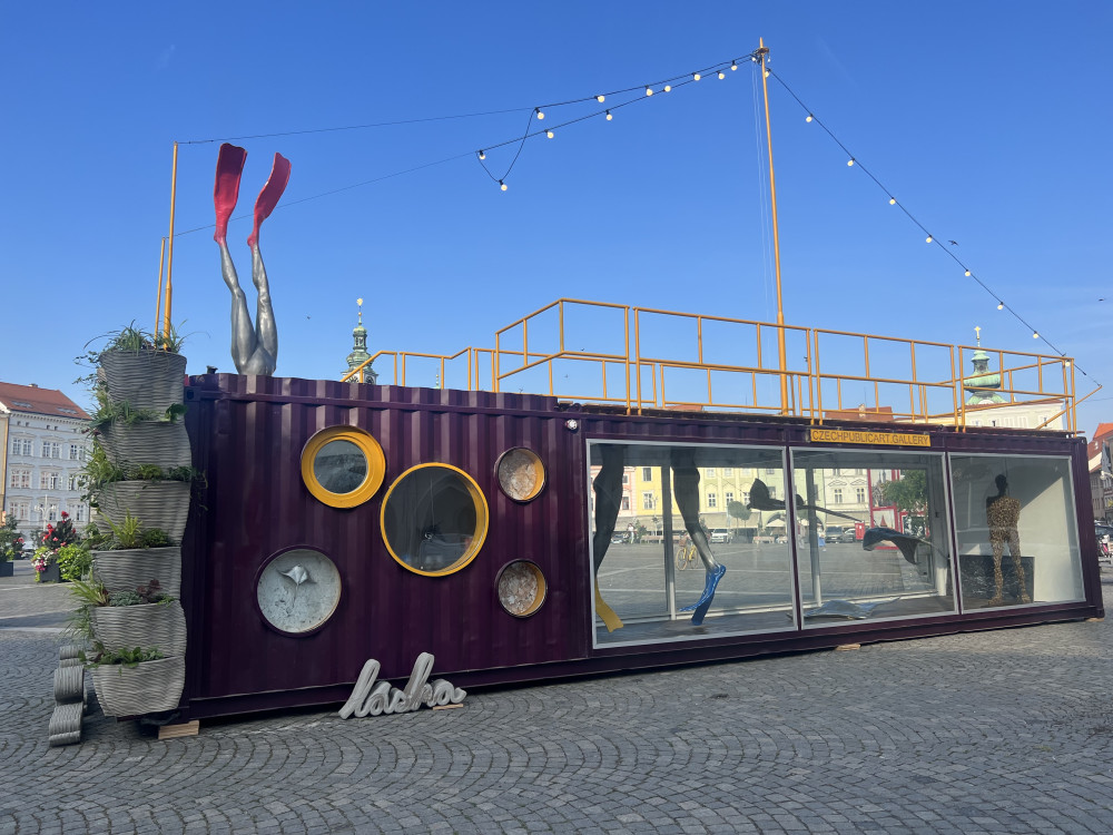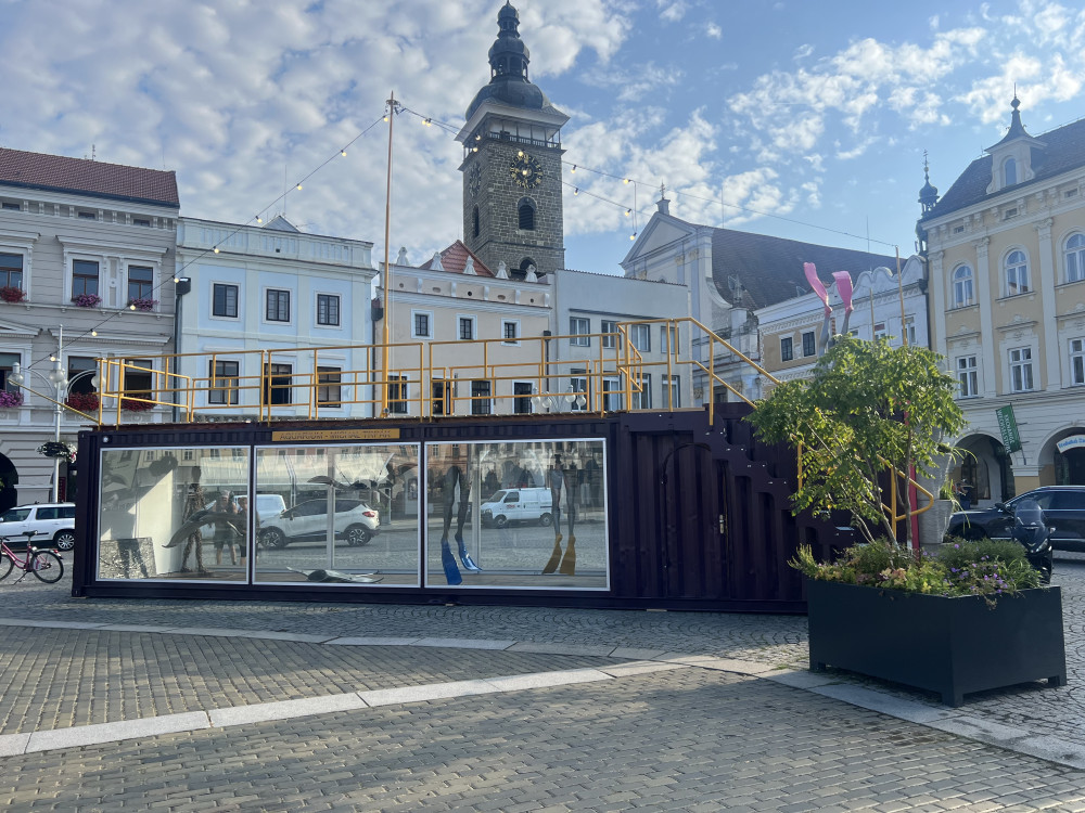 Z lodního kontejneru je mobilní galerie. Zdobí budějcké náměstí