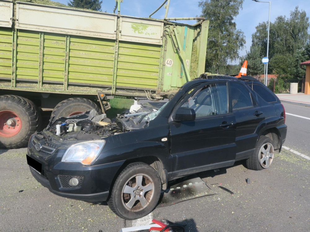 Žena narazila do odbočujícího traktoru. Jen zázrakem z nehody vyvázla s lehkým zraněním