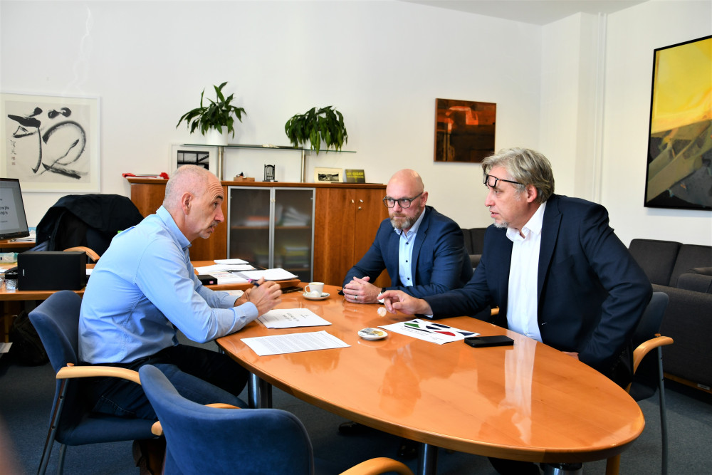 Zleva: Hejtman Martin Kuba (ODS), expert na školství Robert Plaga a náměstek hejtmana a poslanec Pavel Klíma (TOP 09).