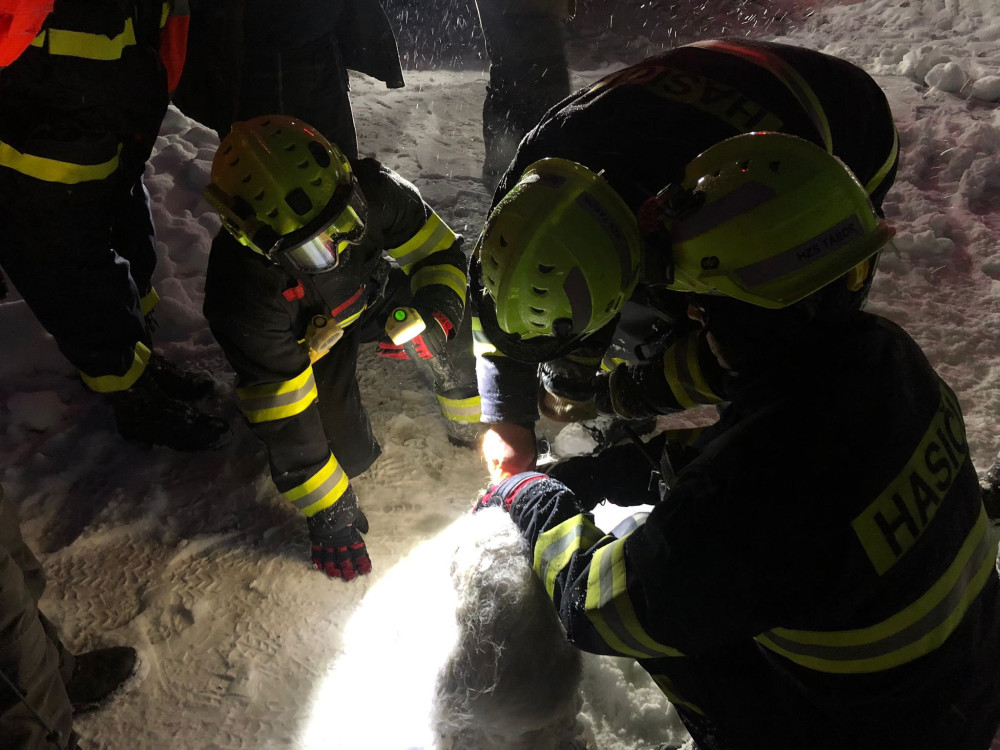 Pes uvízl půlmetrovém sněhu. Zachránili ho hasiči
