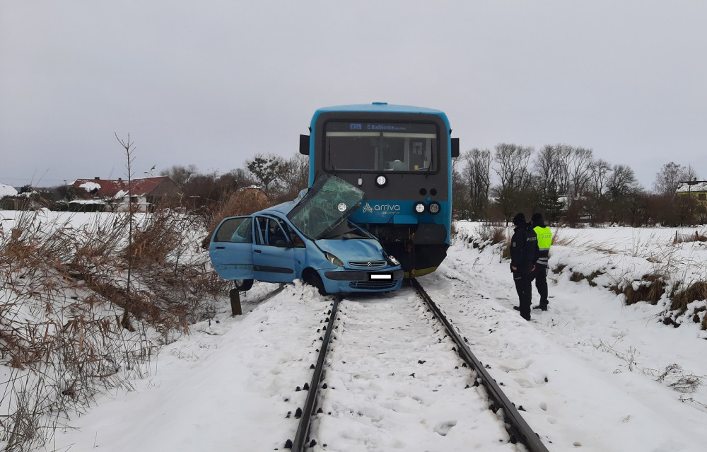 Na Písecku se srazilo auto s vlakem. Řidič vozu nehodu nepřežil