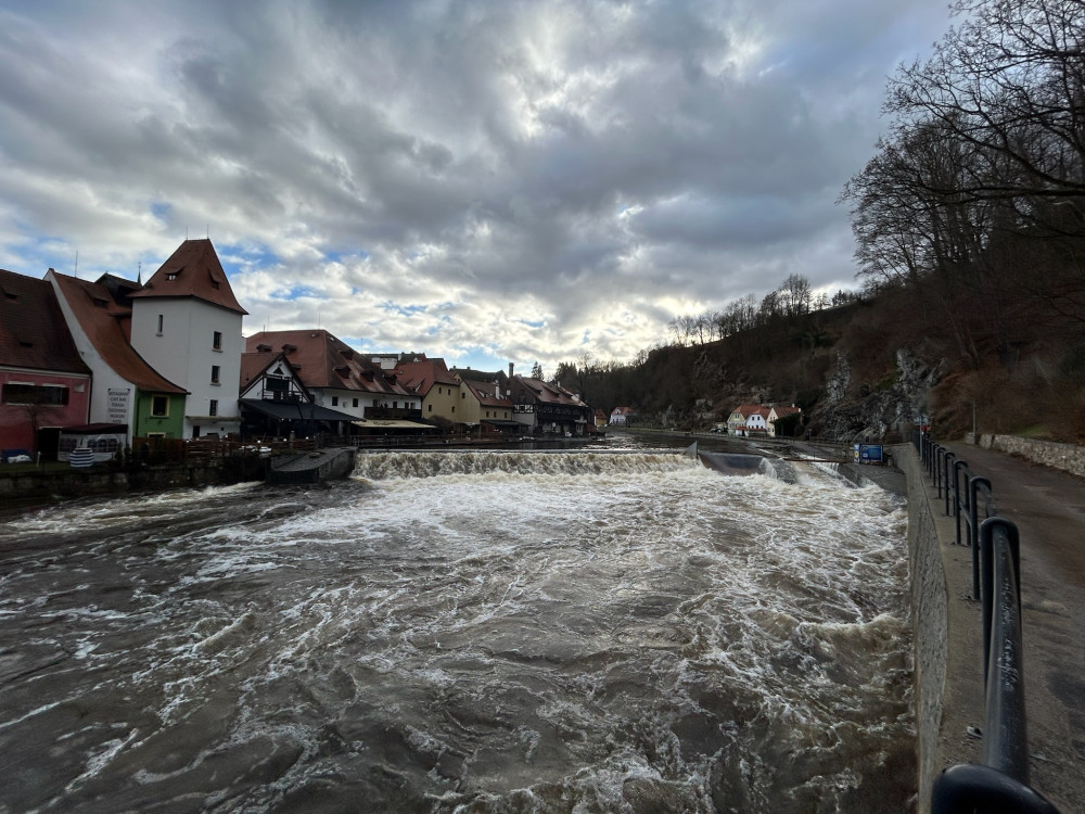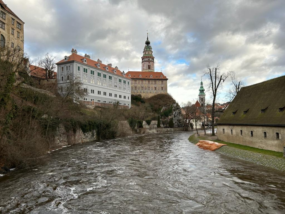 Český Krumlov se připravuje na možnou povodeň. V okolí řeky jsou pytle s pískem