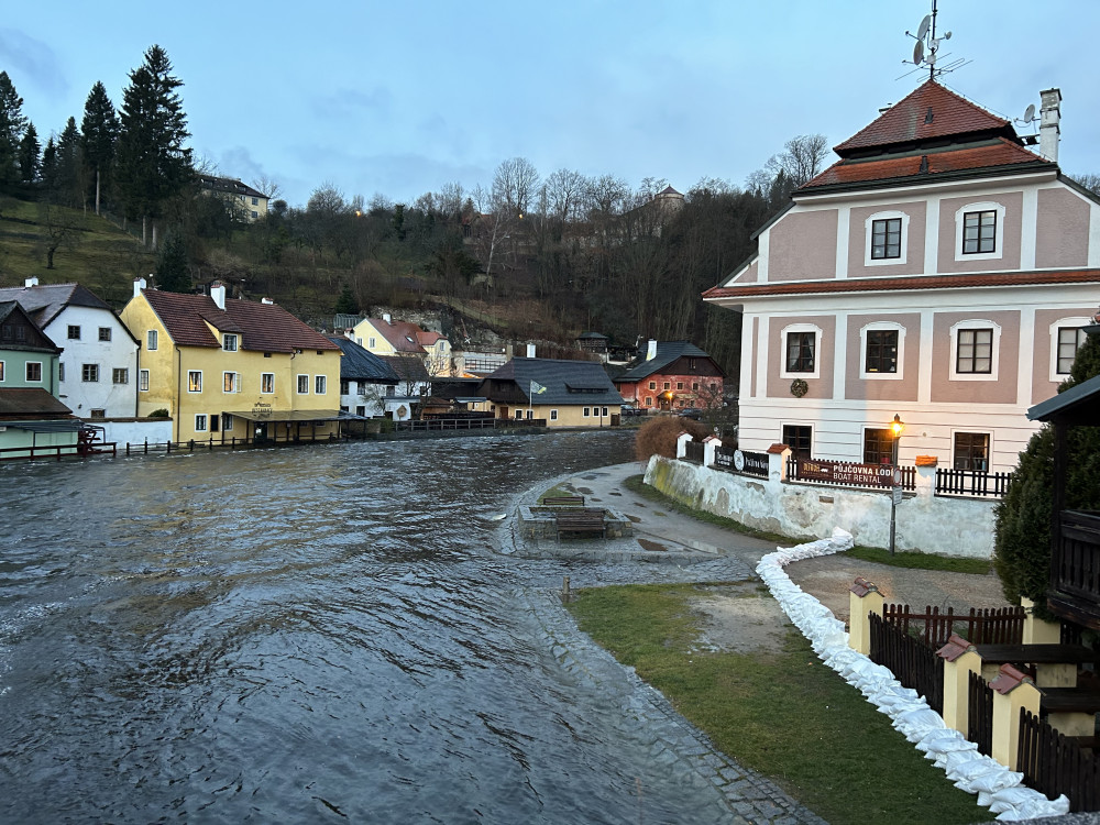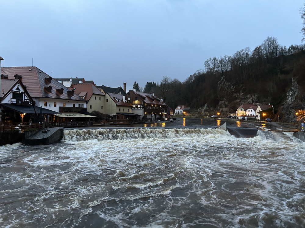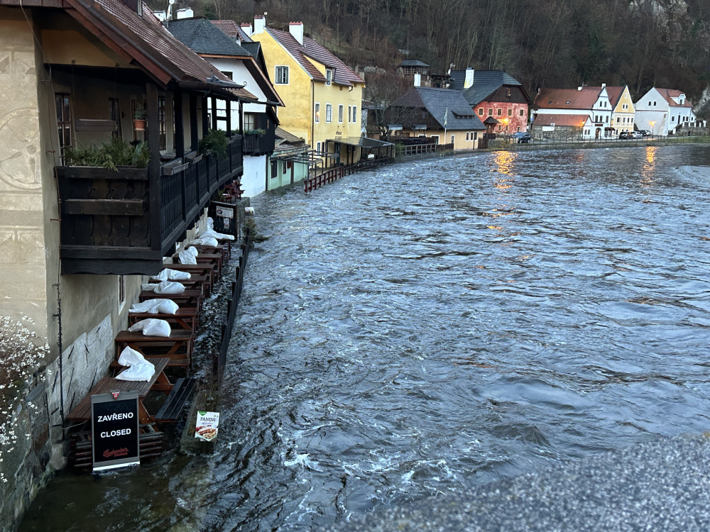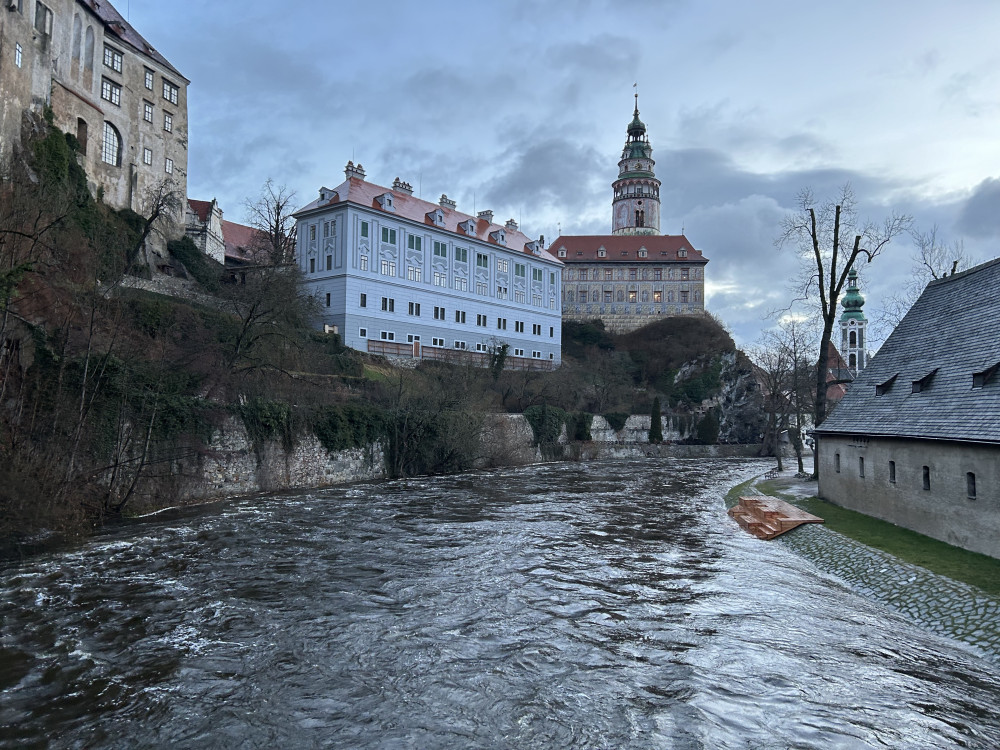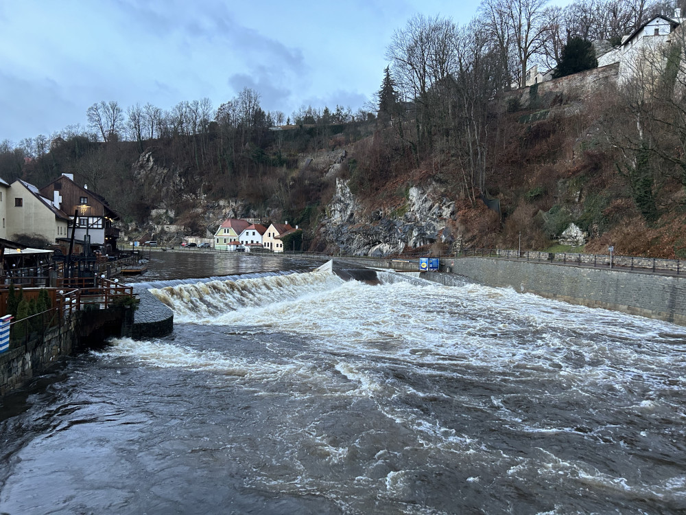 Tak vypadal Český Krumlov koncem pracovního týdne. V uplynulých dnech se tam hladina pohybuje mezi druhým a třetím stupněm povodňové aktivity.