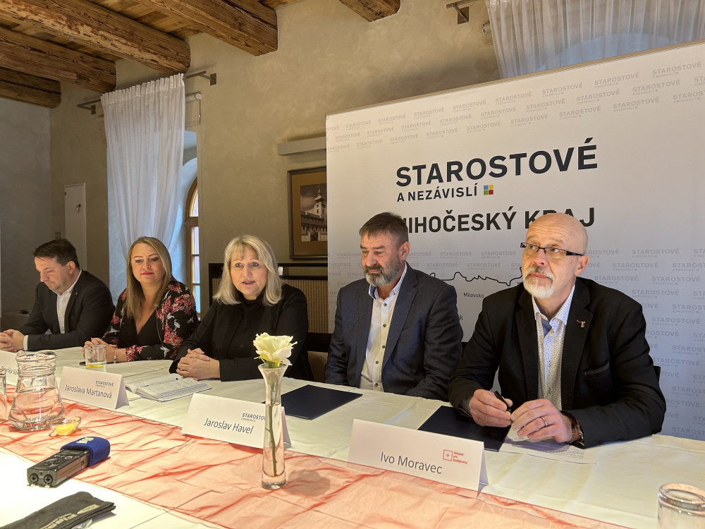 Poslanec Viktor Vojtko, poslankyně Pavla Pivoňka Vaňková, starostka Vimperku Jaroslava Martanová, starosta Pištína Jaroslav Havel (všichni STAN) a zastupitel Ivo Moravec (HOPB).