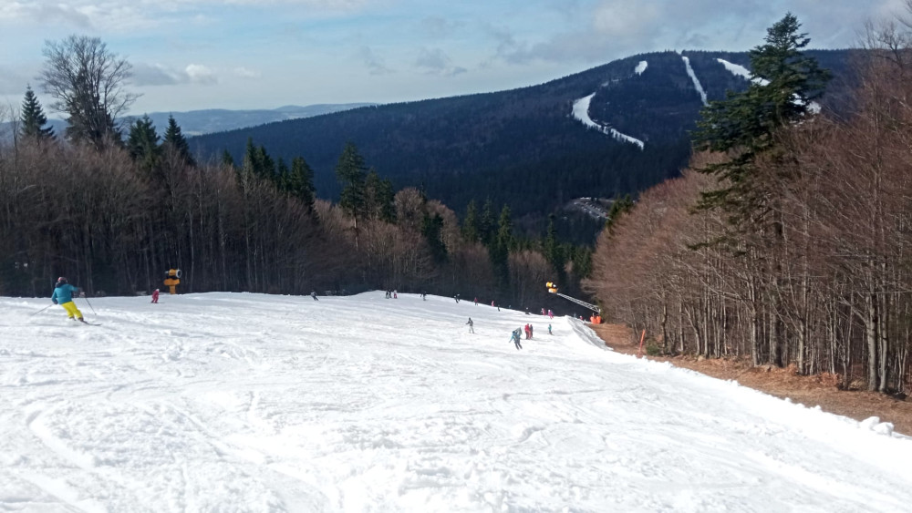 Šumavský skiareál Hochficht je stále v plném provozu, otevřeno je 19 km sjezdovek