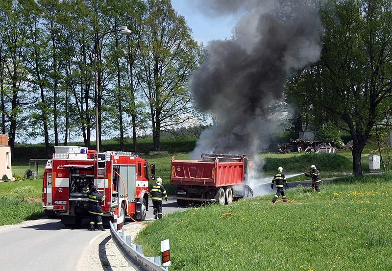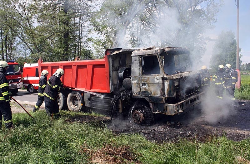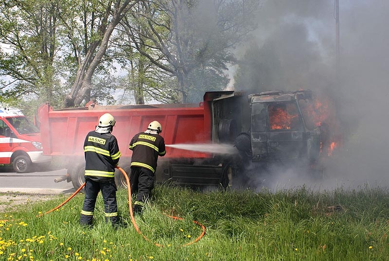 Nedaleko Lišova hořela tatra převážející asfaltovou směs