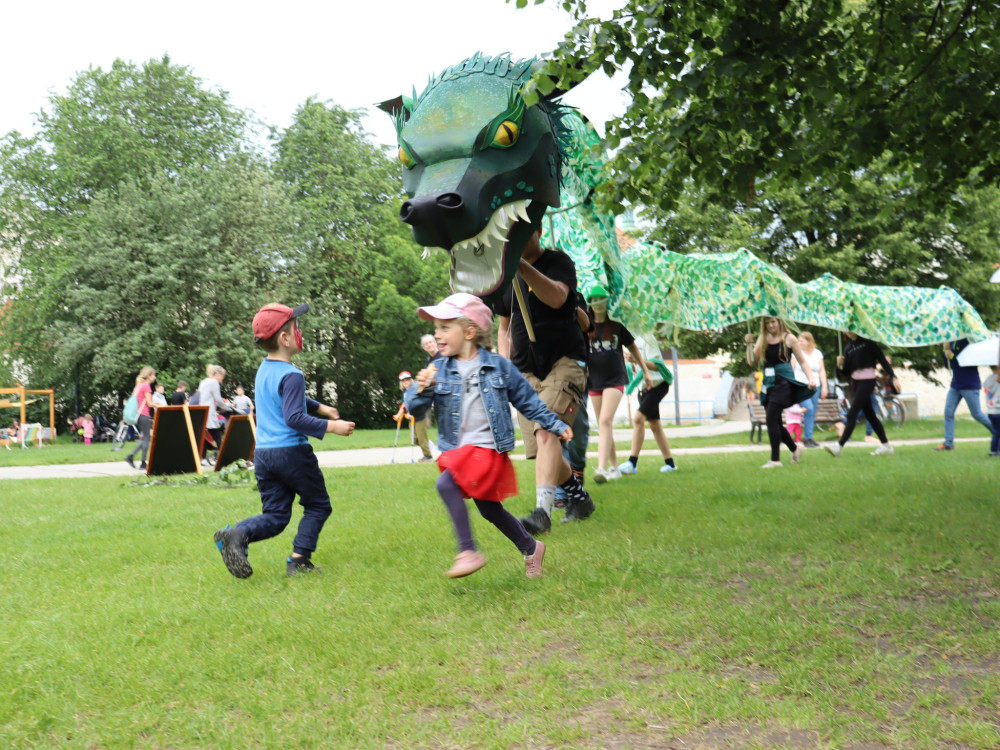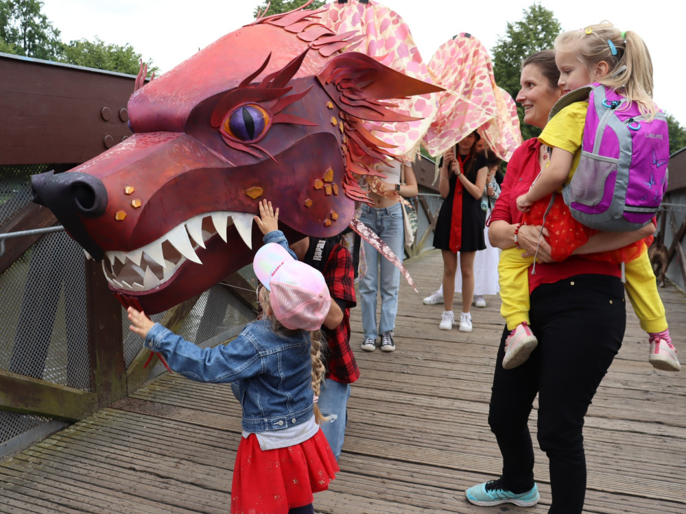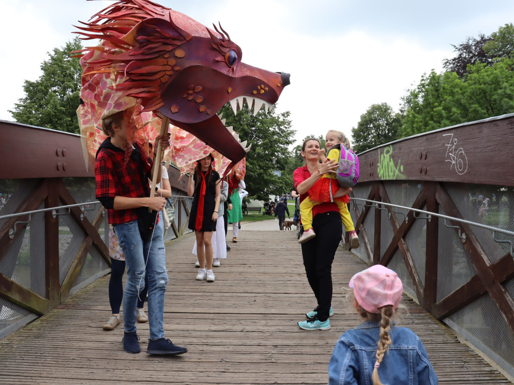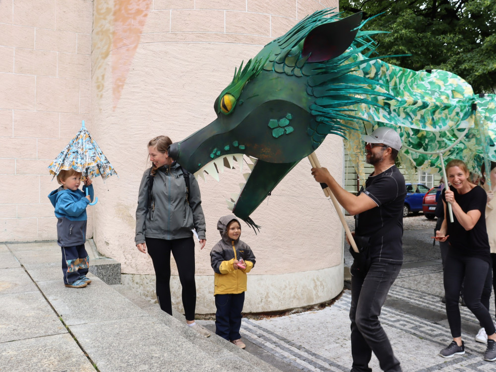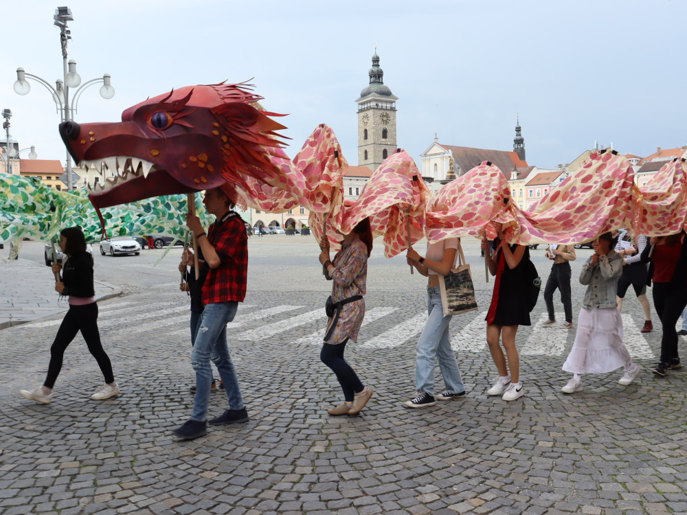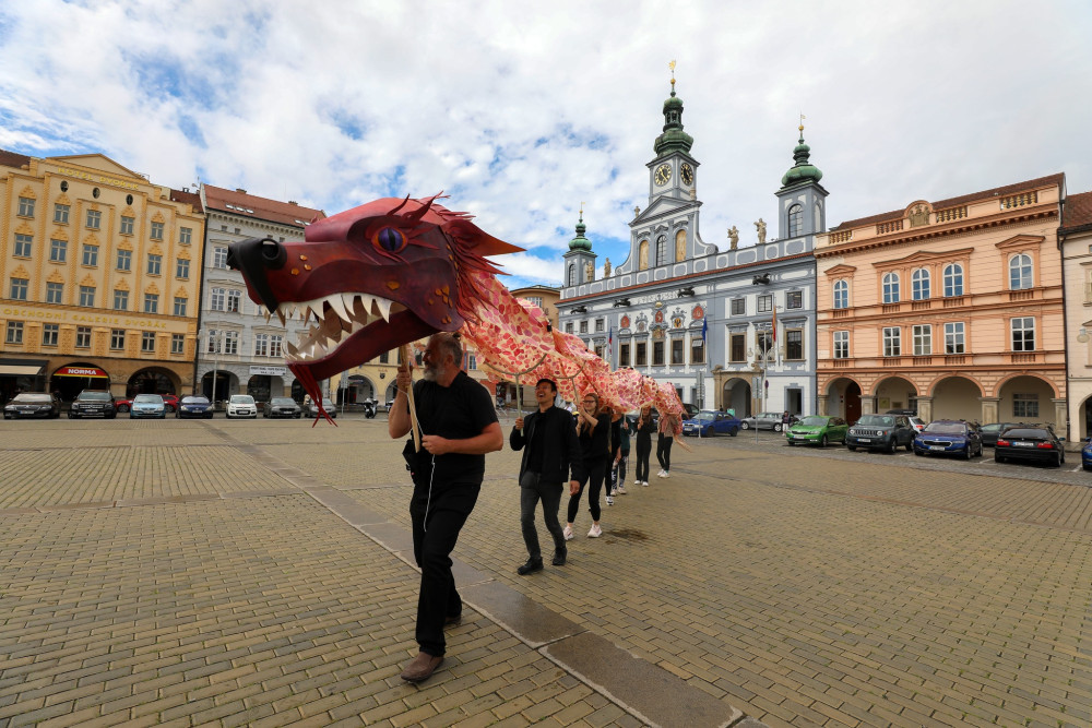 Českými Budějovicemi putuje asijský drak, navštívil náměstí i Sokolský ostrov