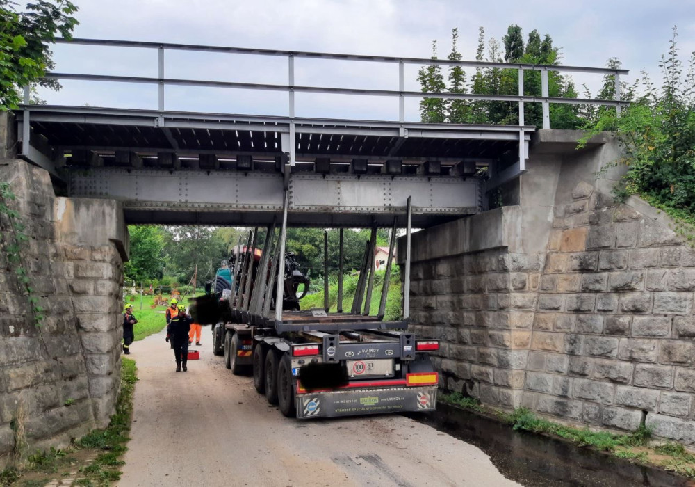 Ve Slavonicích uvízl kamion pod železničním viaduktem