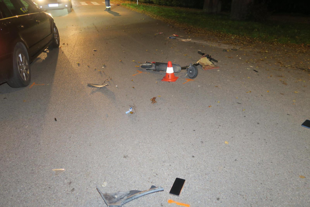 Muž na elektrokoloběžce nedal přednost autu a havaroval. Po nehodě zůstal v bezvědomí