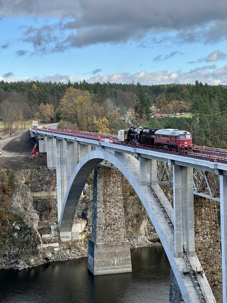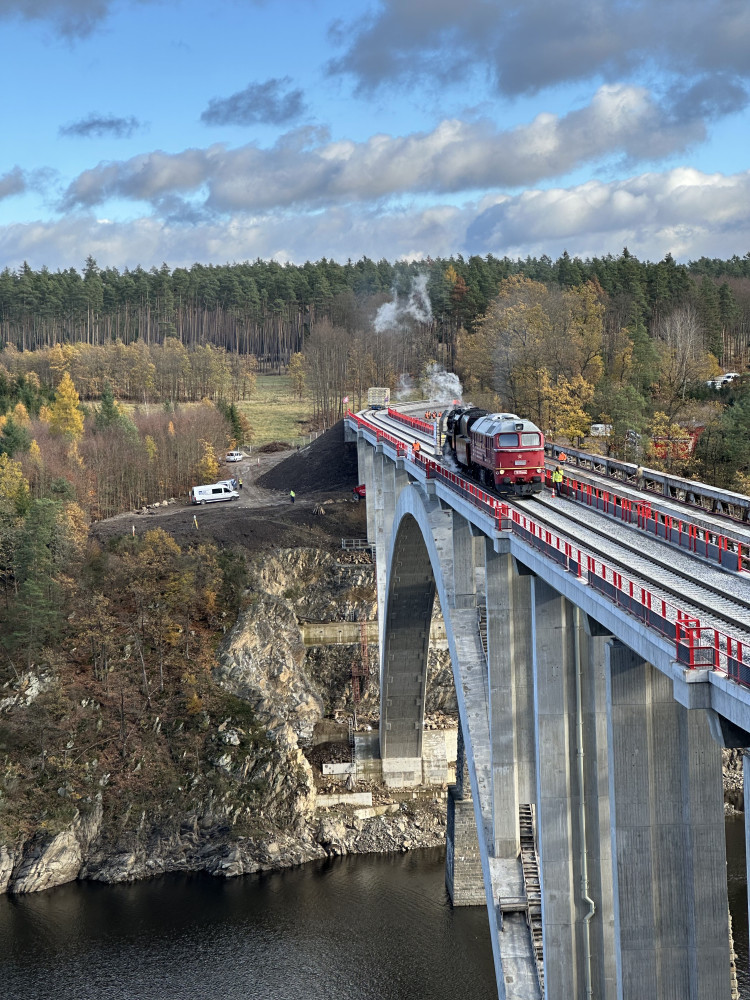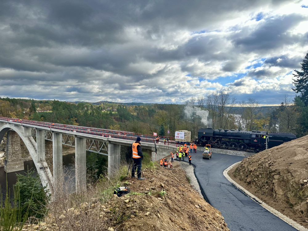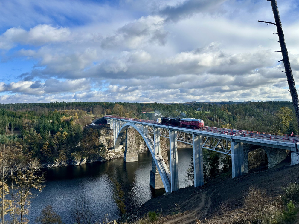 Nosnost mostu v Červené nad Vltavou prověřila dvojice historických lokomotiv