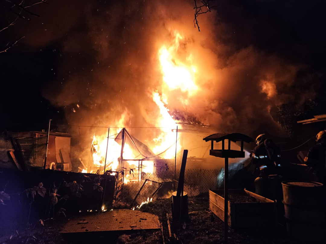Zahradní kůlnu v Týně nad Vltavou pohltily plameny, u požáru asistovali i hasiči z JE Temelín