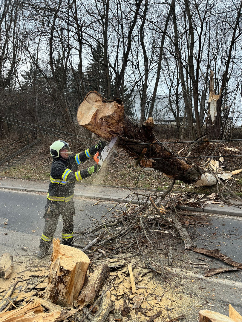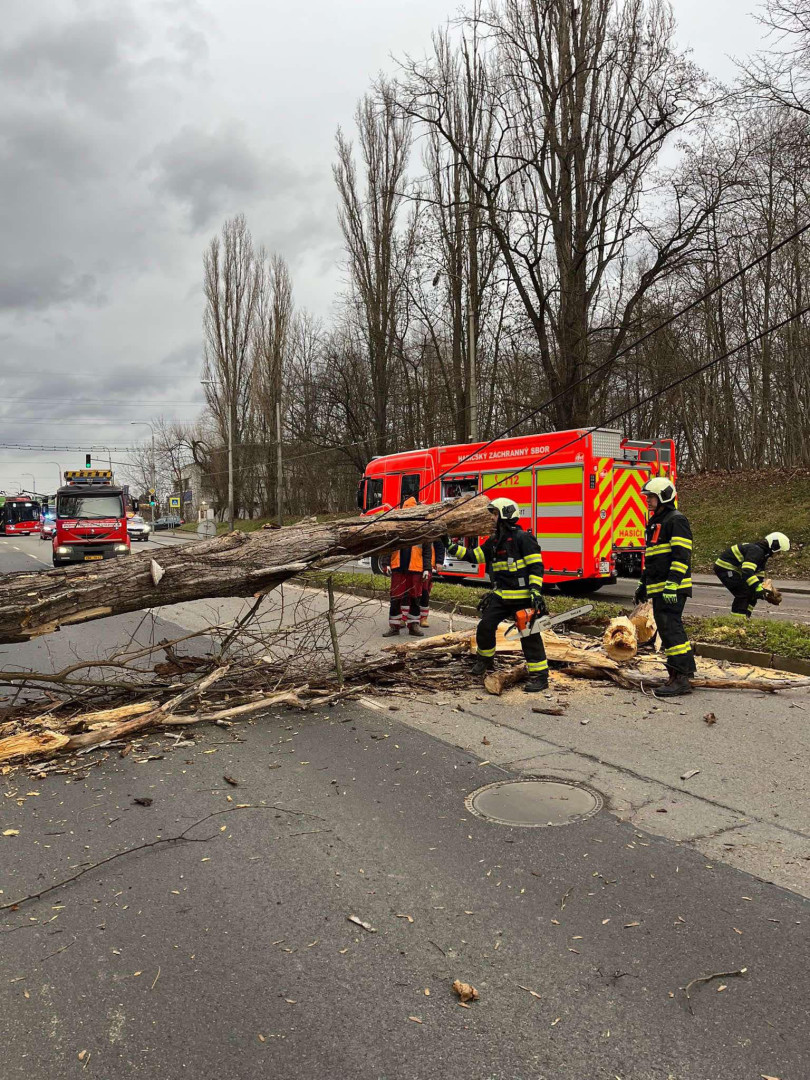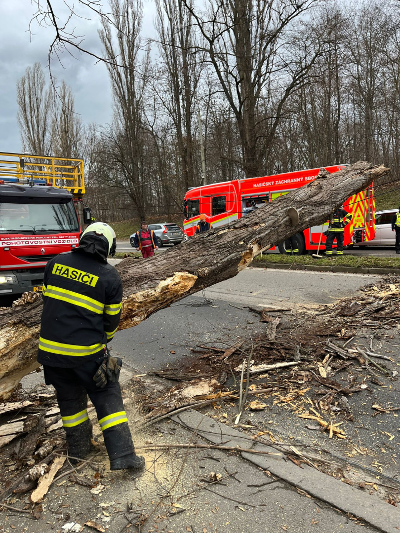 Silný vítr na jihu Čech komplikuje dopravu, hasiči odklízeli 12 popadaných stromů