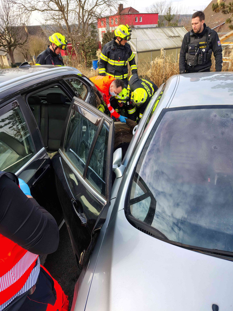 Senior se v Táboře zaklínil mezi dvěma auty, vyprostit ho museli hasiči