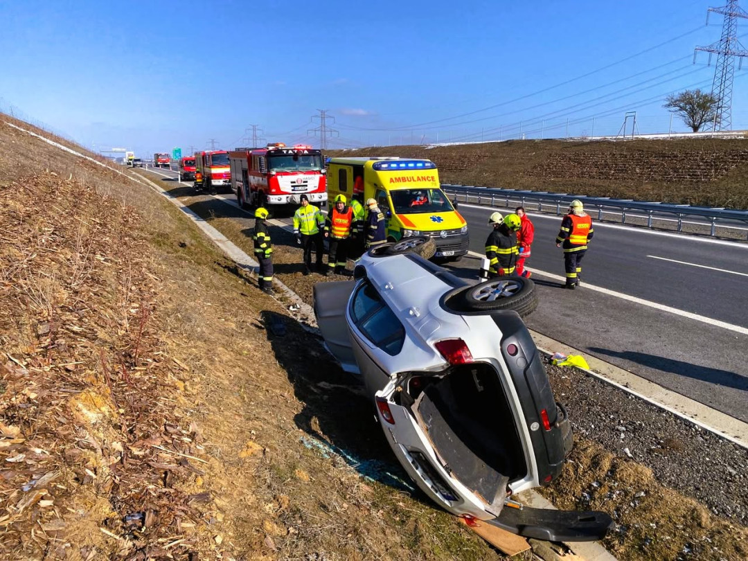 První nehoda na nově otevřené dálnici D4. Osobnímu autu nejspíš praskla pneumatika