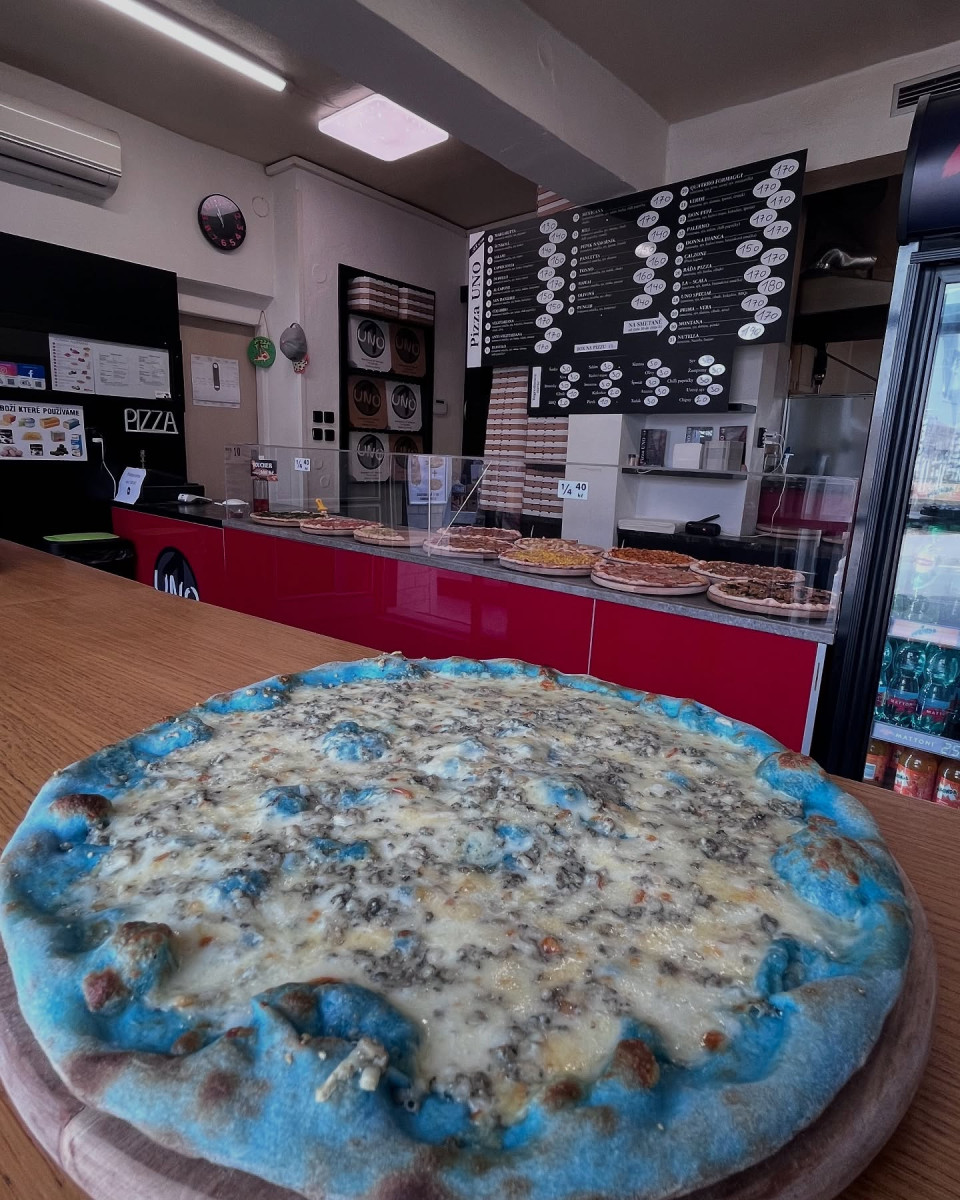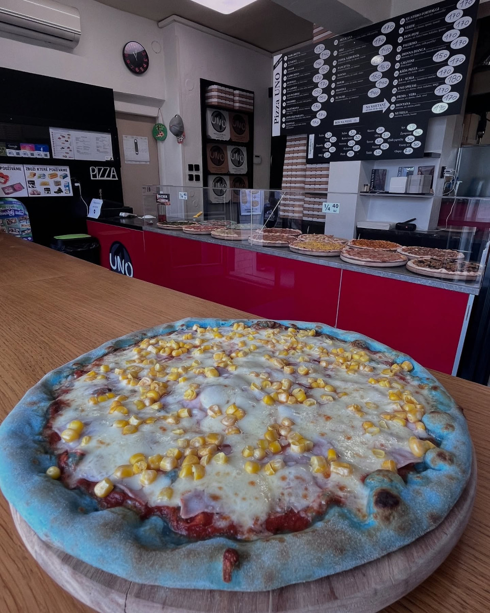 Šmoulí nebo červená. Nabídku v milevské restauraci zpestřily barevné pizzy