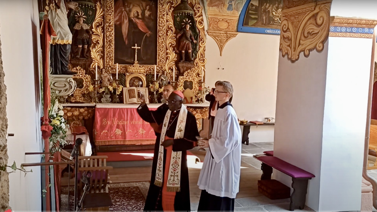 Robert Sarah, horký kandidát na nového papeže, který sloužil mši v Římově