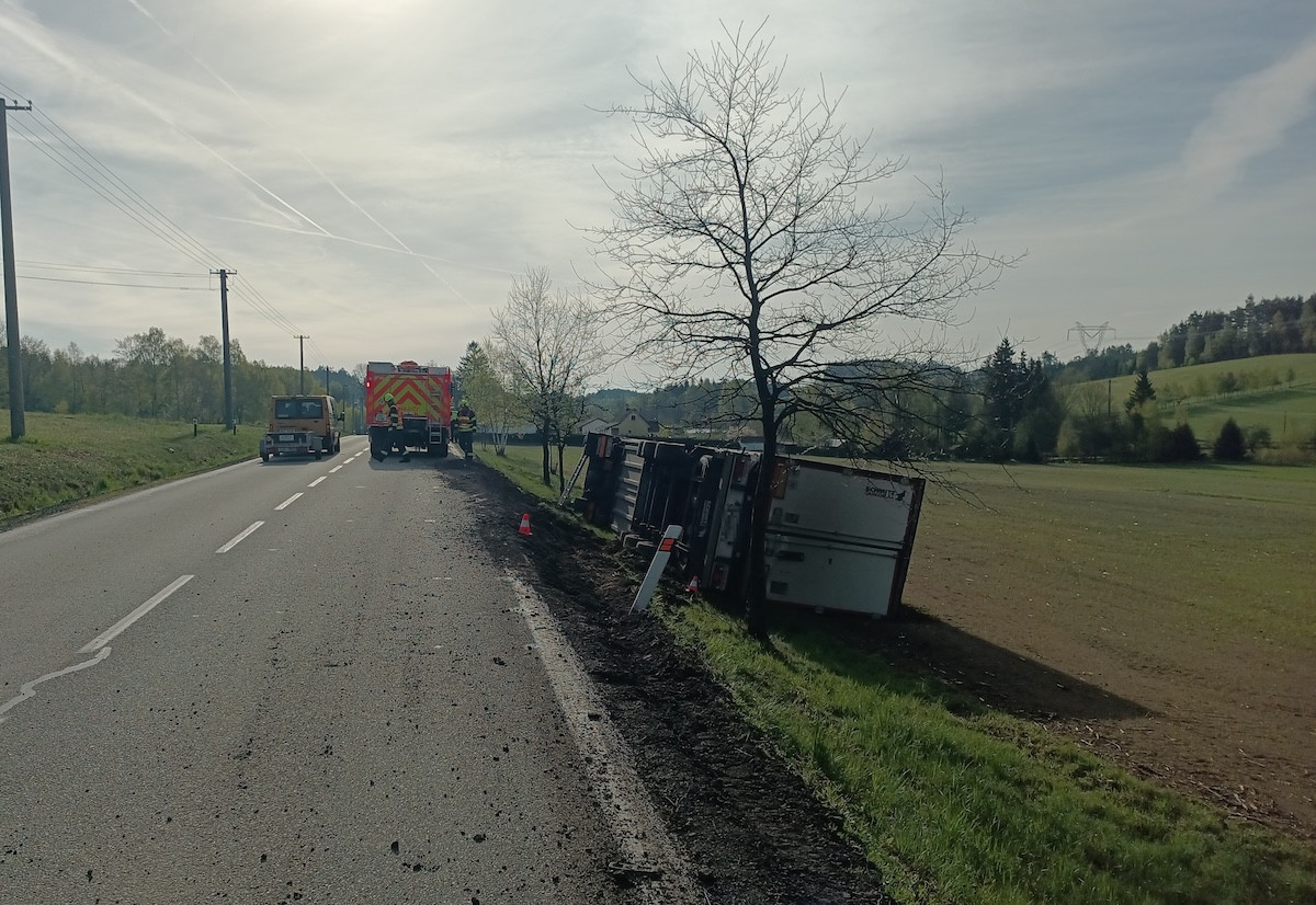 Dopravní nehoda u Kunžaku. Řidič kamionu utrpěl vážná zranění