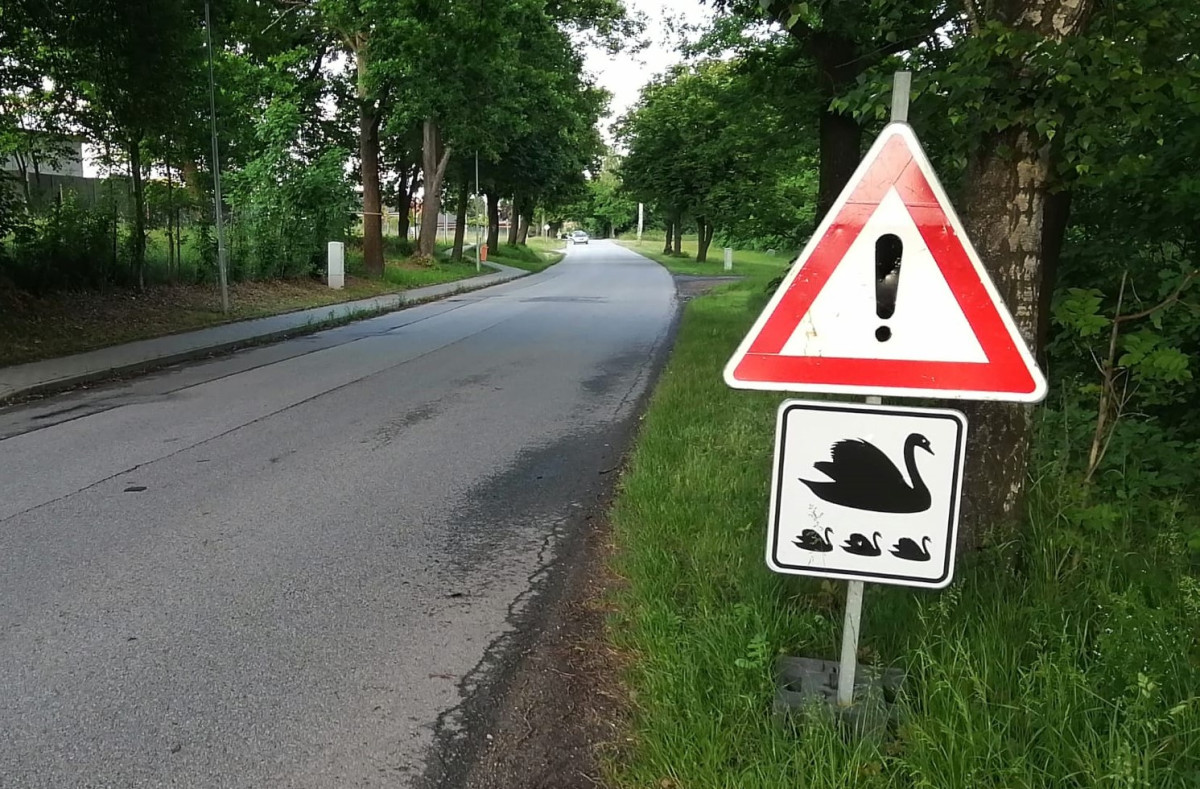 Labutě s mláďaty opět přechází silnici. Litvínovice proto zavedly značky na míru
