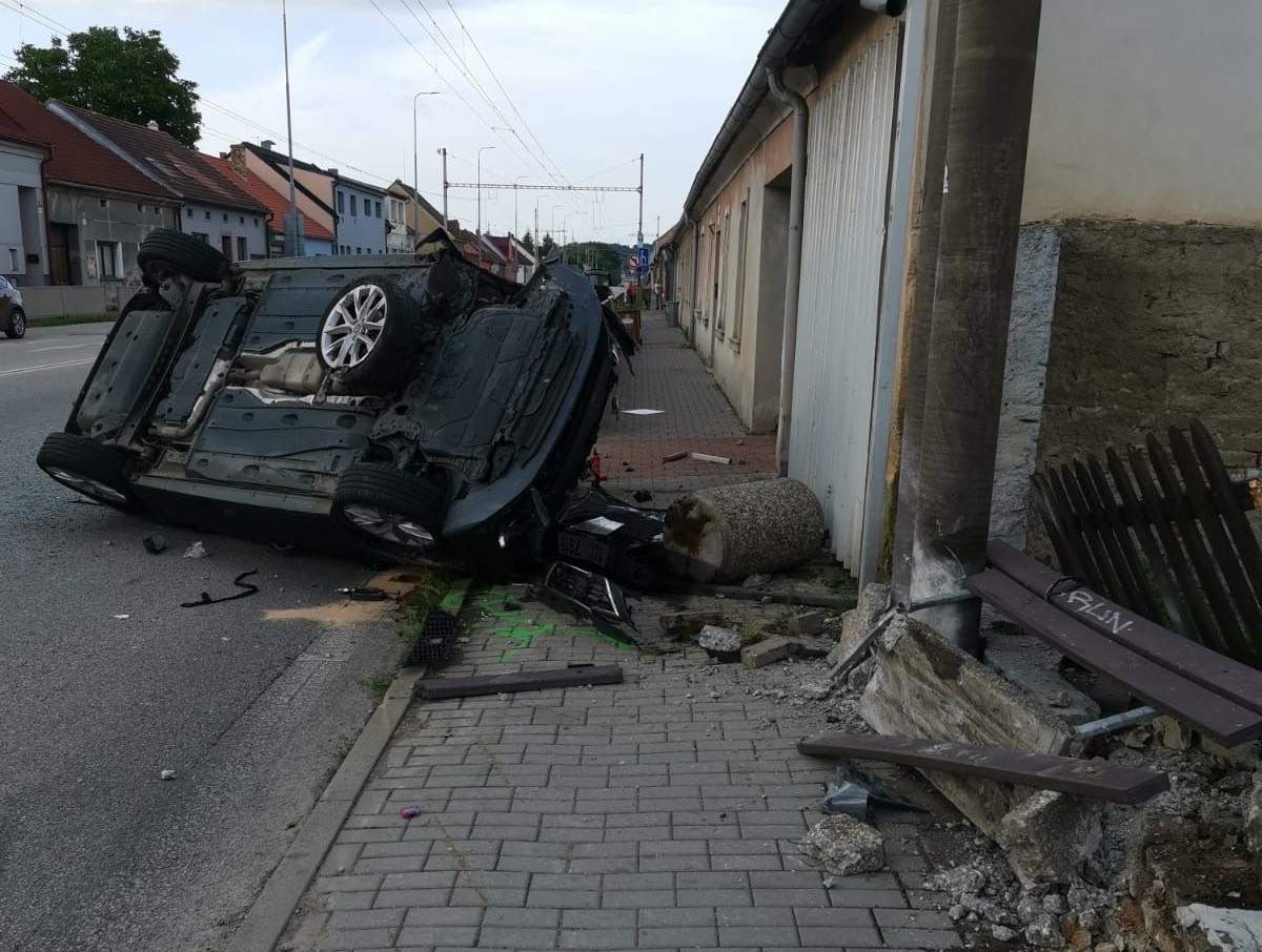 Po srážce dvou vozidel jedno skončilo na chodníku. Tam zranilo dva lidi