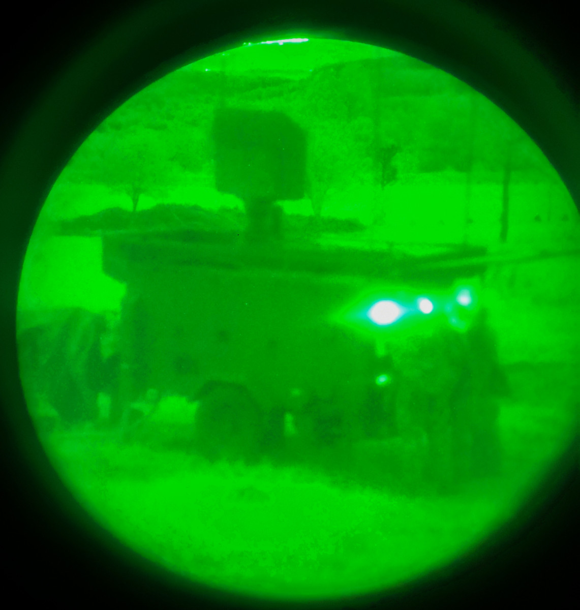 Pohled na prostředek RVR přes zařízení pro noční vidění.