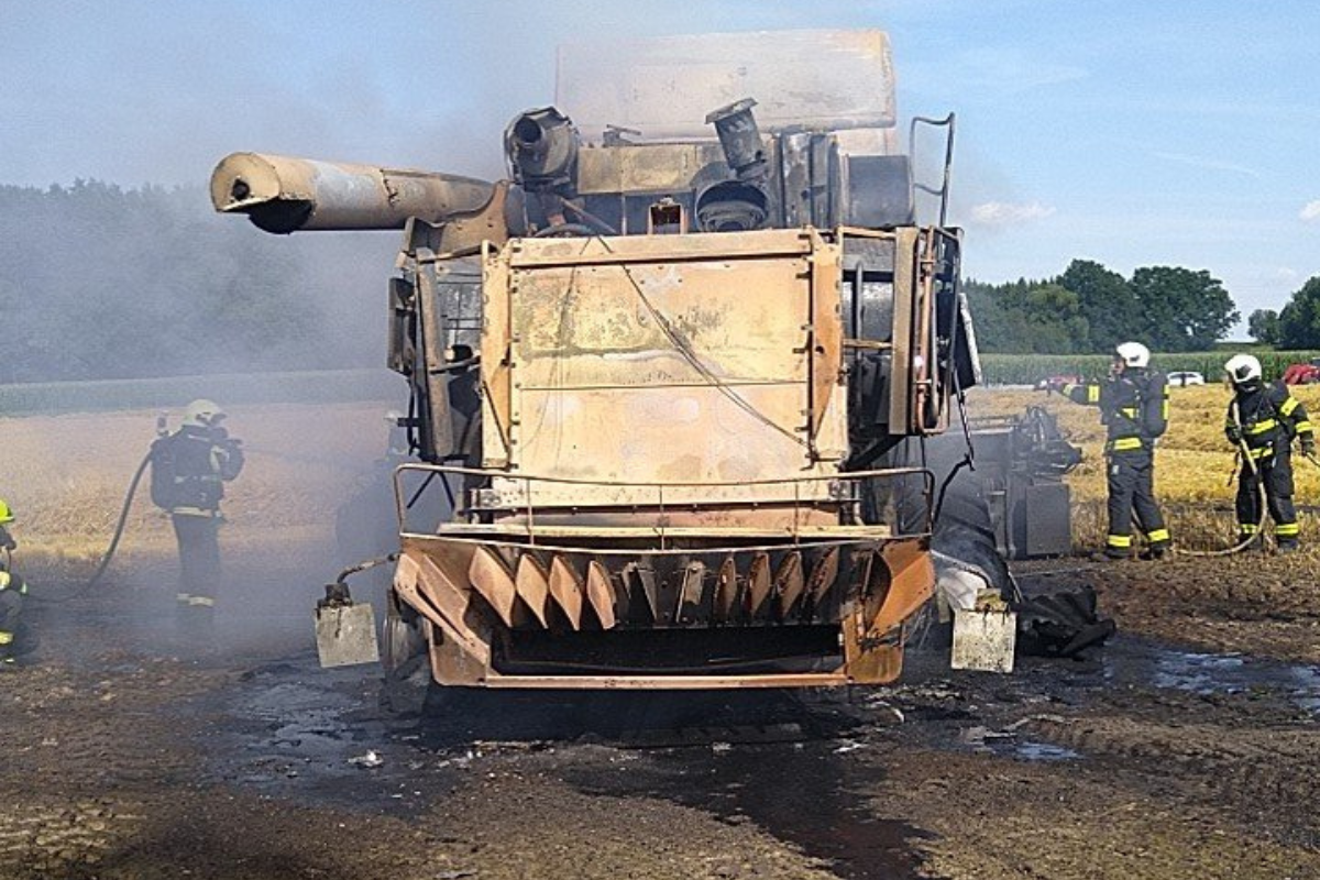U obce Štěkře hoří kombajn, škoda přesáhla dva miliony