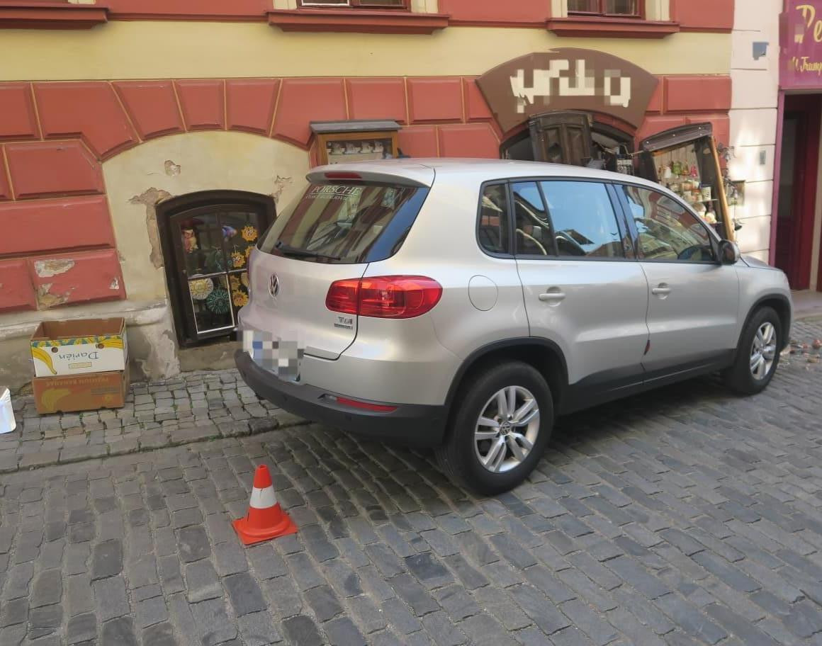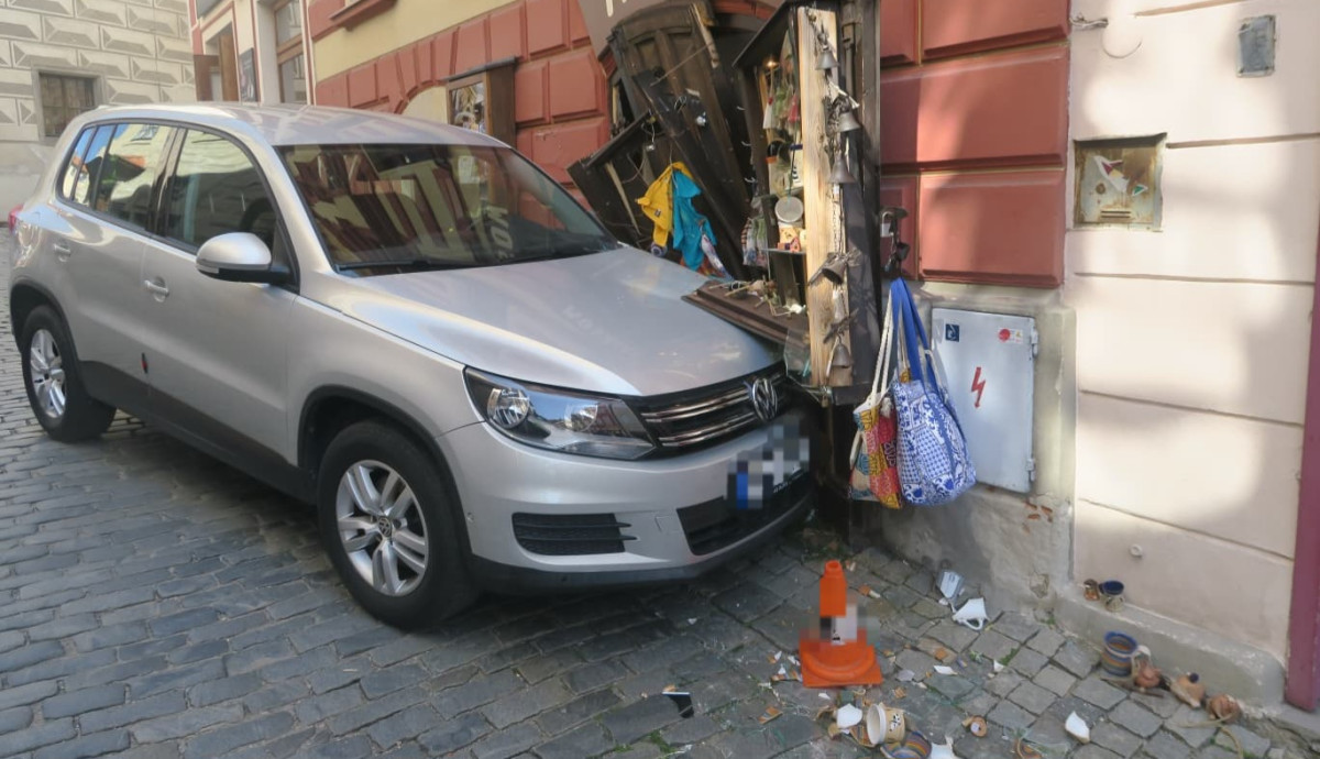 Špatně zabržděné auto zaparkovalo ve výloze obchodu