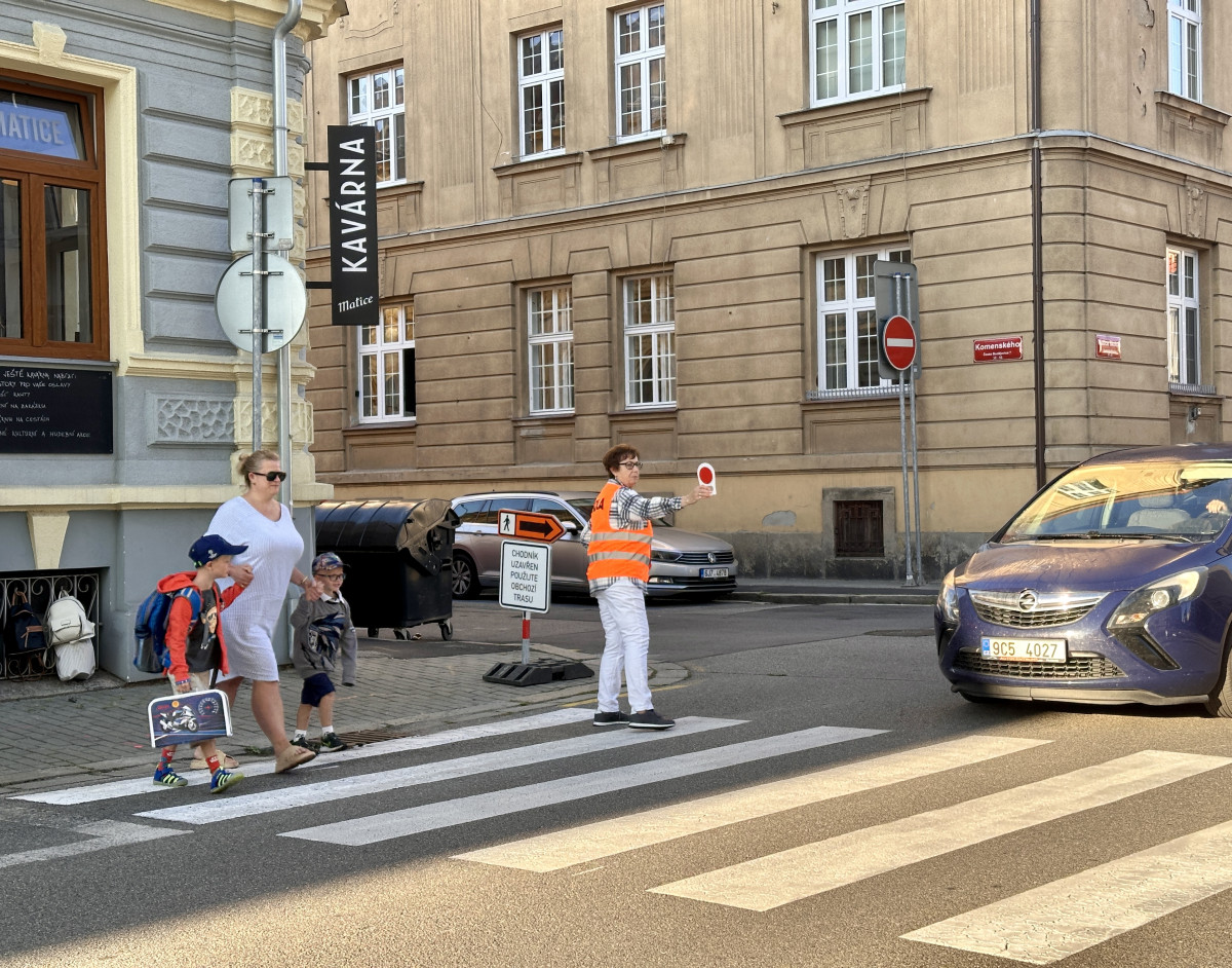 Školáci dnes opět vyrazili do školy, přes přechody jim pomáhali strážníci i dobrovolníci