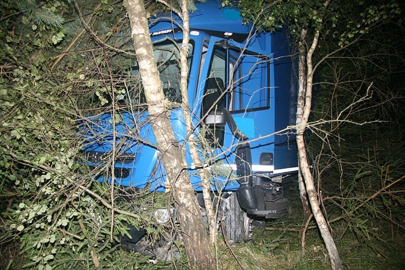 Iveco skončilo mimo silnici mezi vzrostlými stromy