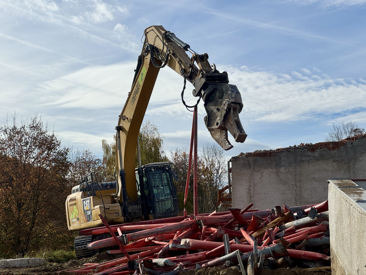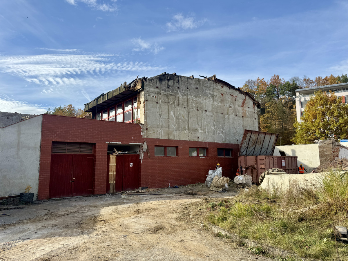 Do bazénu v Krumlově se pustily demoliční stroje. Ohořelý objekt nahradí moderní akvacentrum